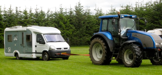En dan beleven we weer een mooi avontuur. We rijden naar een CL even voorbij Fisherford, zien 4 caravans staan en denken daar kunnen we nog wel bij en rijden het (gras) terrein op. Ik zeg nog “moeten we dat wel doen na al die regen” en ja hoor, we zitten zo vast als een huis. Naast de CL ligt een restaurant en daar komt een boze eigenaar uitlopen “I can’t believe you did this” . Nee, wij achteraf ook niet. Gelukkig draait de man weer bij en hij belooft ons een trekker te regelen. We mochten op de parkeerplaats van het restaurant gaan staan nadat we weer los waren en de trekkerchauffeur een fles whisky hebben gegeven. Dan van de nood maar een deugd maken en gaan eten bij het restaurant. Echt heel erg lekker gegeten; zeebrasem met witte en groene asperges en sauce hollandaise. Verwacht je niet in zo’n klein afgelegen restaurant. Echt een aanrader om te gaan eten bij “The Fjord Inn” .