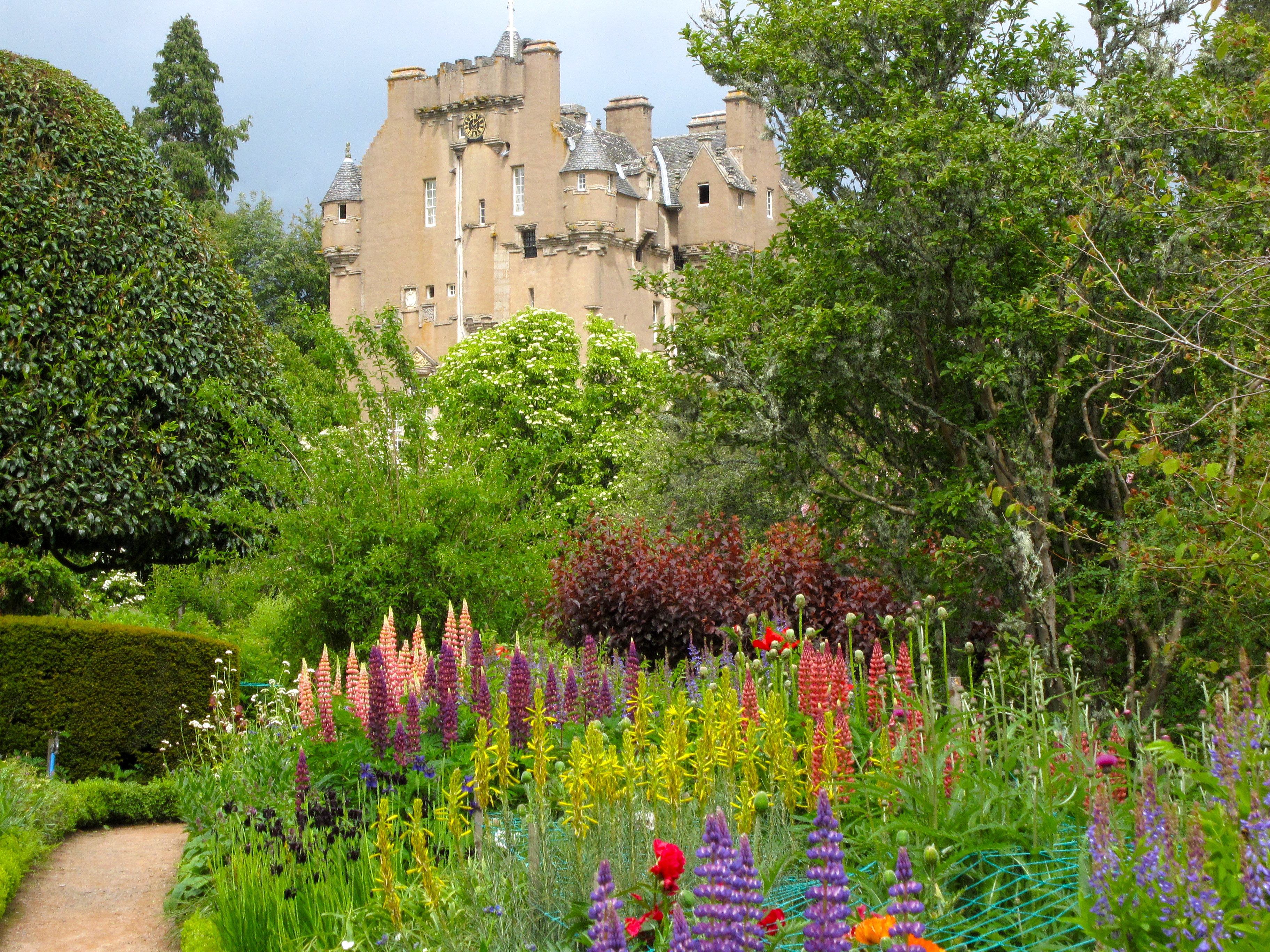 Zondag 7 juni: een wisselvallige dag. Buien en felle opklaringen. Dit weer is prima te doen. We bezoeken Crathes Castle. Voor kasteel en tuinen moet je apart betalen. Tenzij je lid bent van de National Trust for Scotland, zoals wij. Mooie tuin met nu volop bloemen.
