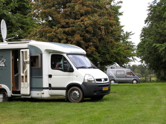 We rijden inmiddels op de “single track” wegen. Geen enkel probleem met de camper. Passeerplaatsen genoeg, weinig verkeer en hoffelijk rijgedrag. Ook hier weer een gecombineerde camping en dit keer plaats genoeg.