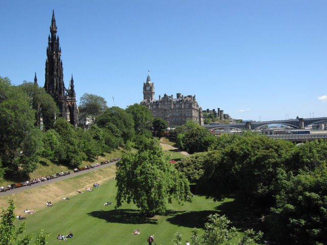 De volgende dag rijden we nog even terug naar Pittenweem, een aardige plaats, veel kunstwinkeltjes en met een stinkende haven. Daarna naar Falkland Palace aan de A912 boven Muirhead. We overnachten op caravan en camping park Morton Hall. En boeken meteen voor drie dagen. De camping is een prima uitvalbasis voor een bezoek aan Edinburgh, met de bus ben je in 25 minuten in het centrum. We hebben 2 dagen uitgetrokken voor de stad en ik moet zeggen, Edinburgh is inderdaad een mooie gezellige stad. Het kasteel staat helemaal in het teken van alle oorlogen dus dat hoeft van mij niet zo nodig. We stonden ’s morgens met fleece en windjack op de bus te wachten maar om een uur liepen we in een shirtje. De bewoners van de stad genoten ook van het mooie weer en vermaakten zich op de grasvelden van Princess Park.