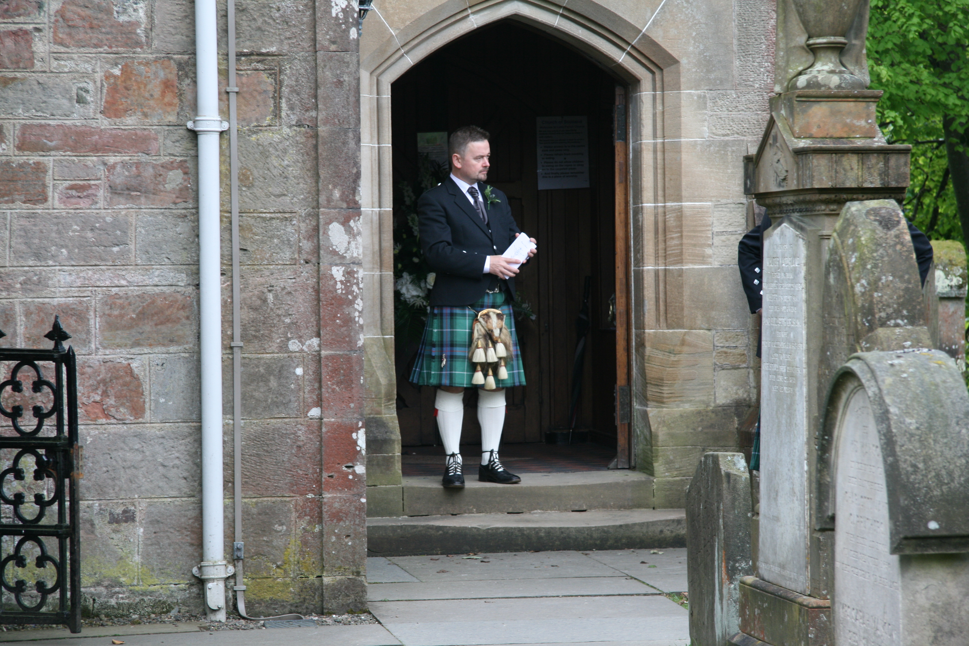 We stoppen bij Luss een aardig dorpje en kijken een tijdje bij een trouwerij in het kerkje. De bruidegom is een Schot en trouwt in een kilt. Het is hier gebruikelijk dat de bruidegom en de familie al in de kerk zijn voordat de bruid arriveert.