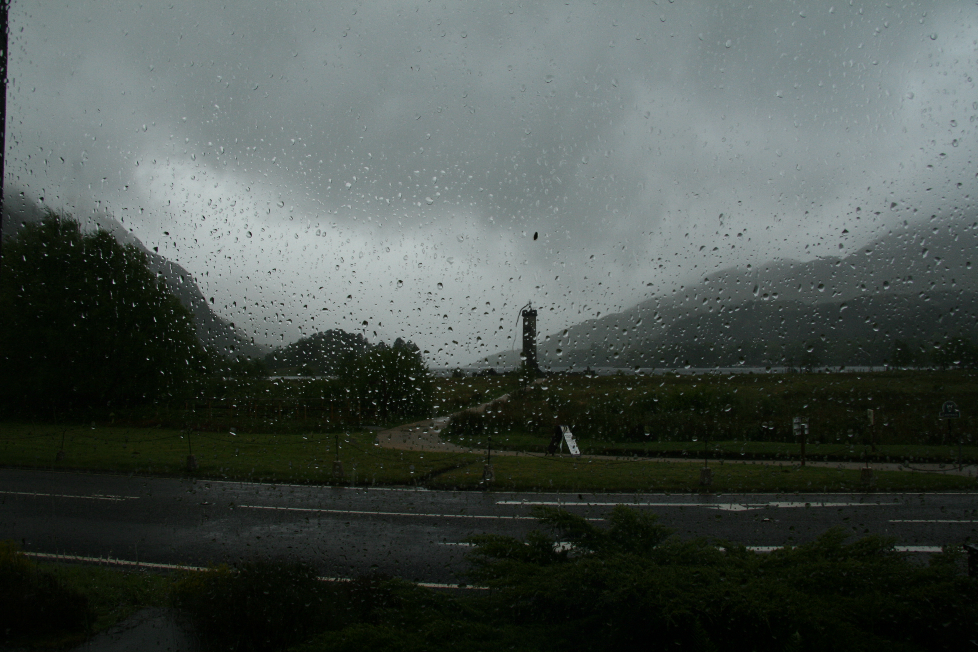 Het weer wordt steeds slechter als we richting Glenfinnan Monument rijden. Het visitor center kunnen we wel in maar het monument zelf niet. Het hoost!!