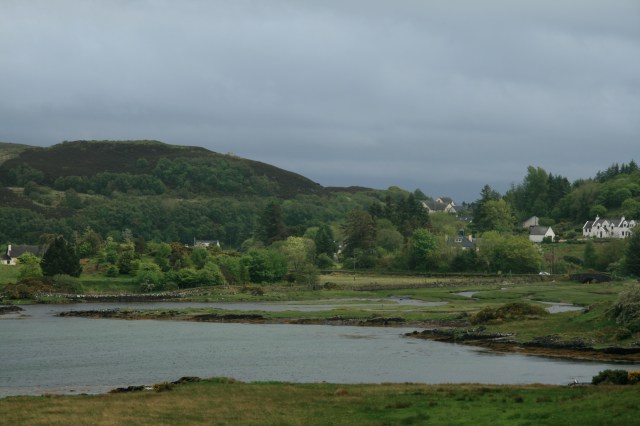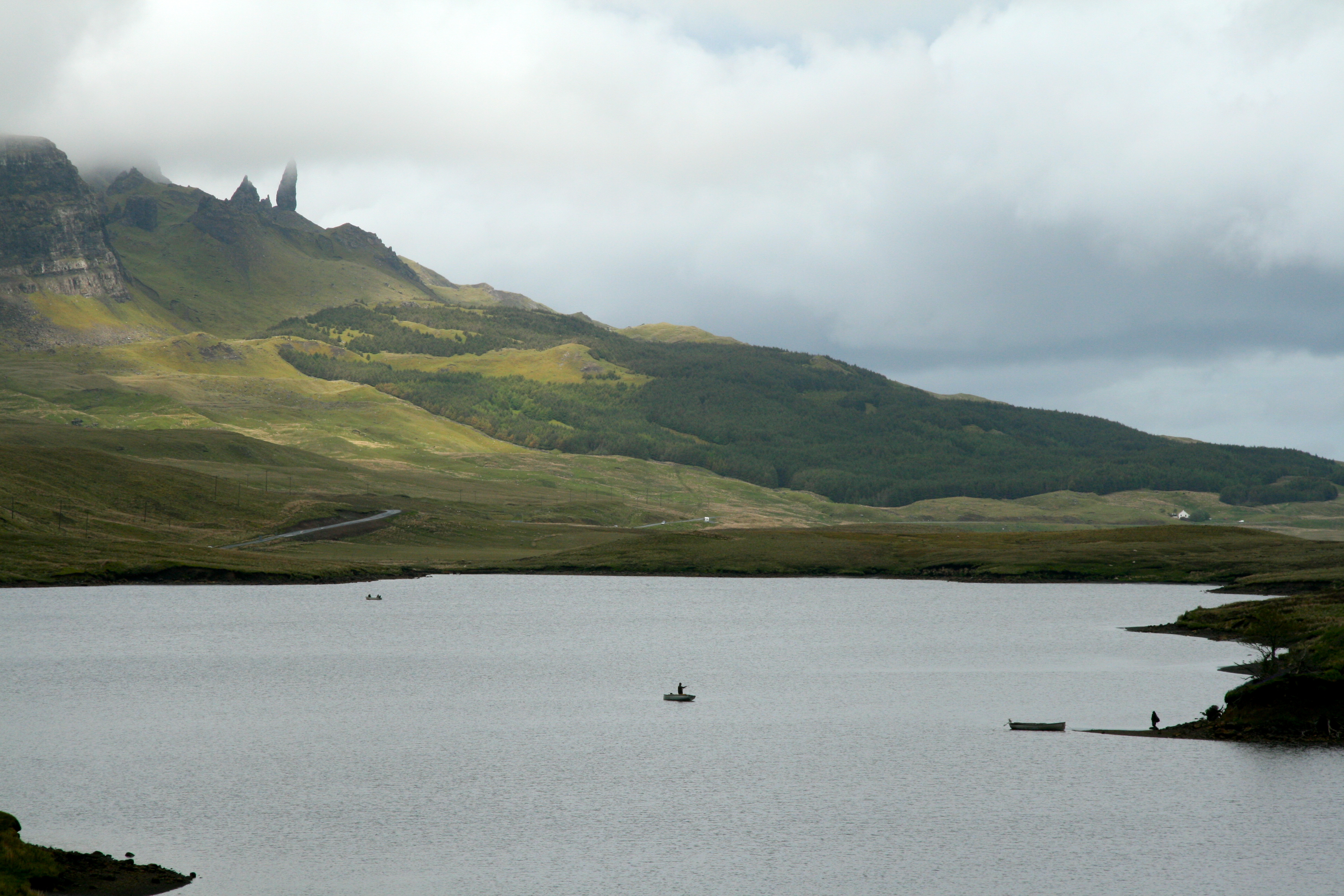 In de winkels weinig spannends. Veel geweven spul en van alles met ruiten. We rijden de 855, mooie uitzichten die met mooi weer ongetwijfeld nog mooier zouden zijn geweest. Van de “Old Man of Storr” en de ander toppen zien we niet veel.