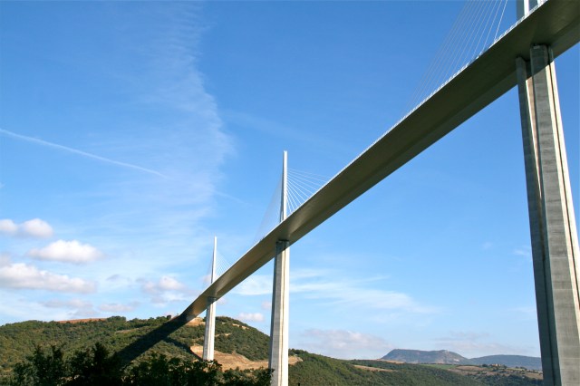 Natuurlijk rijden we ook even naar de spectaculaire brug van Millau. Het is inderdaad een indrukwekkend bouwwerk. Onder de brug is een bezoekerscentrum met info over de brug.