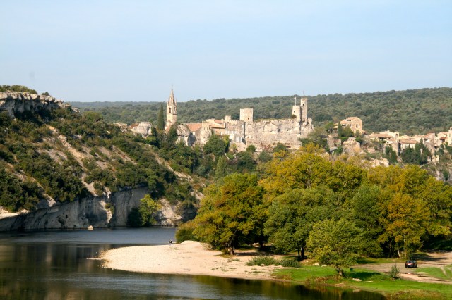 Dinsdag. De zon!! Dat was leuk wakker worden. Weer een mooie blauwe lucht! Prachtig weer om de D209 te rijden en steeds weer bij mooie uitzichtspunten de camper parkeren en eruit. Eerst de brug over naar Aigueze. Gelegen op een klif boven de Ardeche. Wat een prachtig plaatsje!