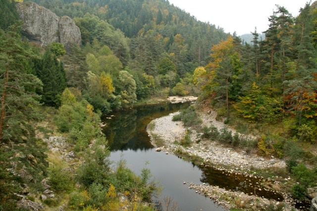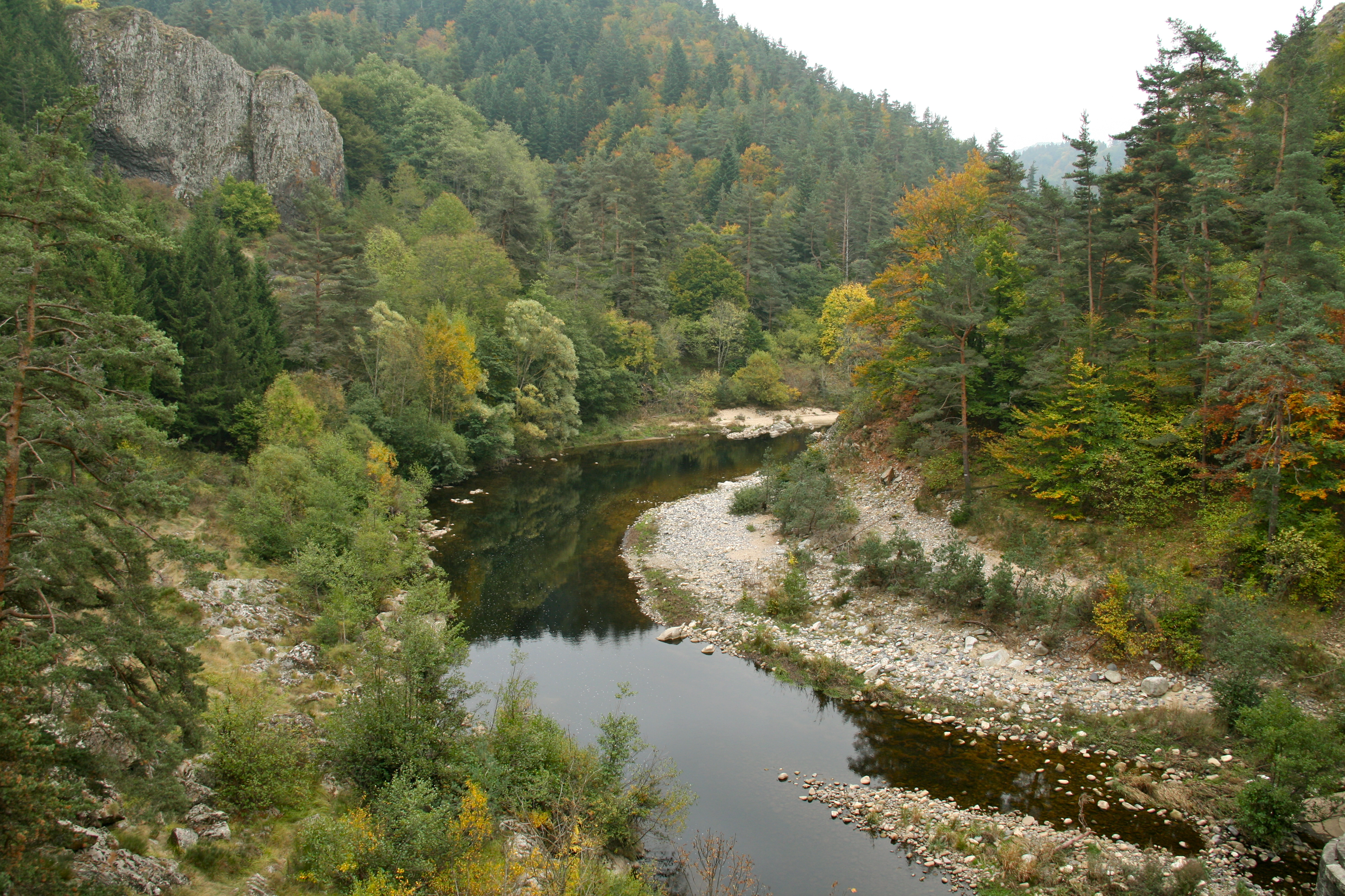 Op Zaterdagmorgen doen we eerst wat boodschappen in Vorey, niet veel te krijgen. Slager is dicht in het naseizoen en de groenteboer is ook niet denderd. Bij Retournac krijgen we opeen een brede Loire te zien, een klein voorpoefje. Hoe het komt weet ik niet maar de rivier komt hier smal binnen en verlaat het stadje ook weer als een snelle smalle rivier. Het is heel leuk om de Loire van zijn oorsprong te volgen. De natuur is heel wisselend.