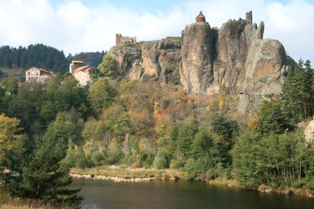 Het kasteel staat bovenop een vulkanische bergtop op 80 m hoogte. De muren gaan over in de grillige vormen van de rots. Niet te vergelijken met de machtige kastelen voorbij Orleans maar het plekje is werkelijk magnifiek.Als je het dorpje even voorbij rijdt ligt er links een mooie picnic plaats met uitzicht op dorp en kasteel.
