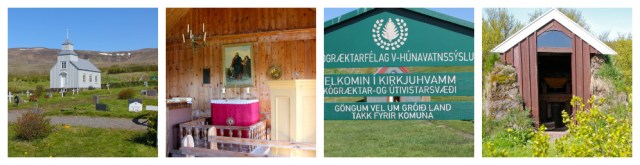 Via de 56 weer terug naar Borgarnes waar een goede supermarkt zit en vandaar omhoog via de 1 door een verlaten lava landschap. Voor we naar de camping van Laugarbakki gaan rijden we de 72 op voor een bezoekje aan Hvammstangi. Helemaal boven in het dorp ligt een kerkje bij de ingang van het natuurpark. Een prachtig gebied. 2 dames zijn de graven aan het verzorgen en zij laten ons de kerk even van binnen zien.