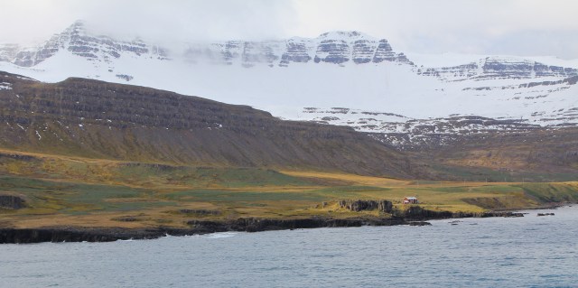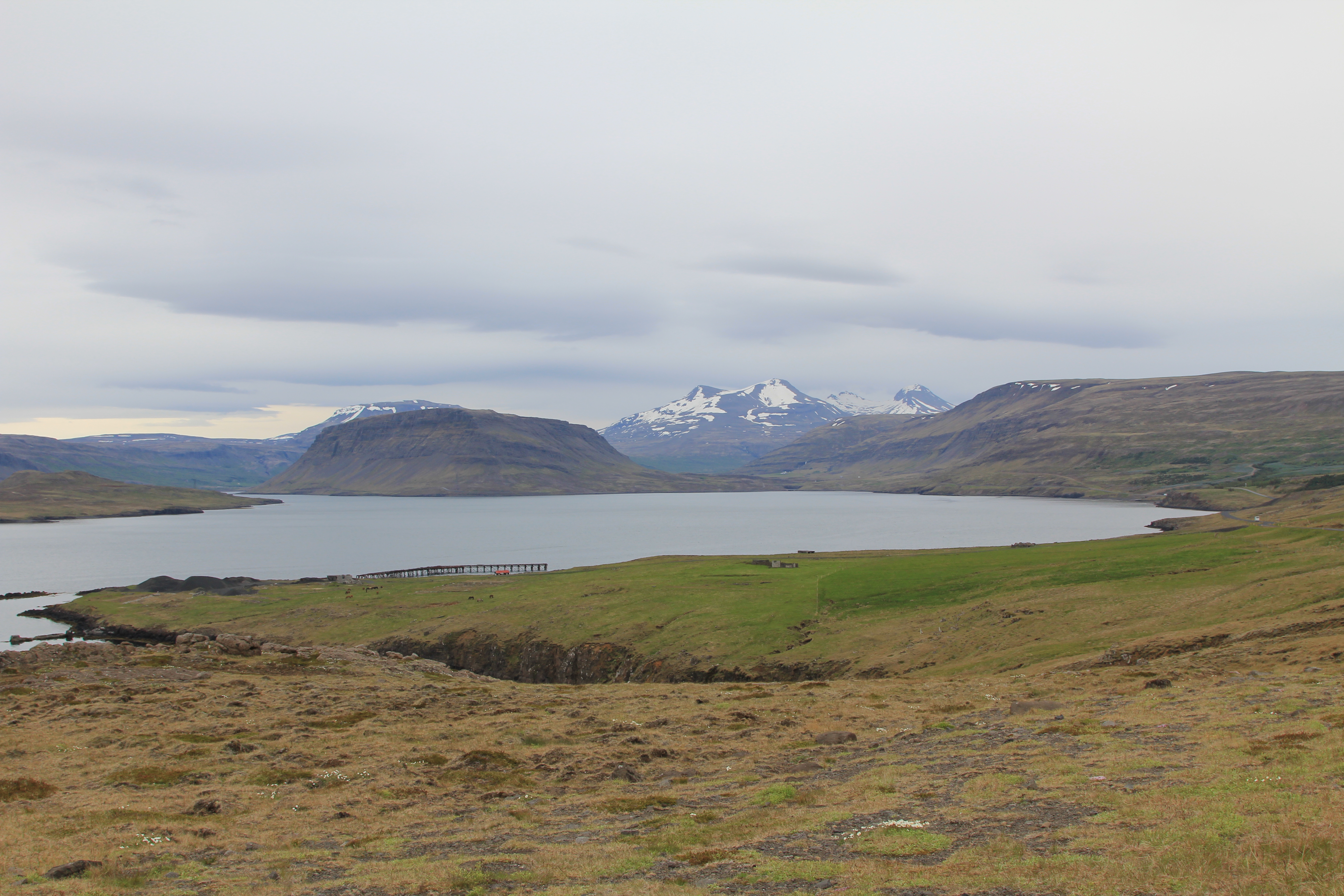 Omdat Seydisfjordur op zeeniveau ligt zien we het van verre al liggen. De plaats wordt omringd door bergen en het schijnt dat de mensen die hier wonen ’s winters de zon gedurenden twee maanden niet te zien krijgen.