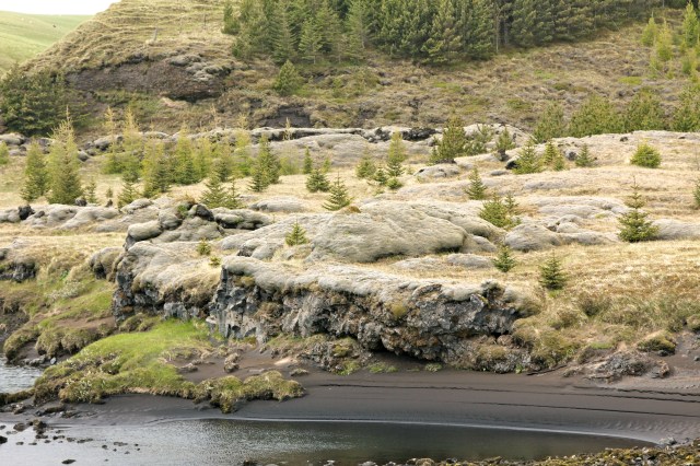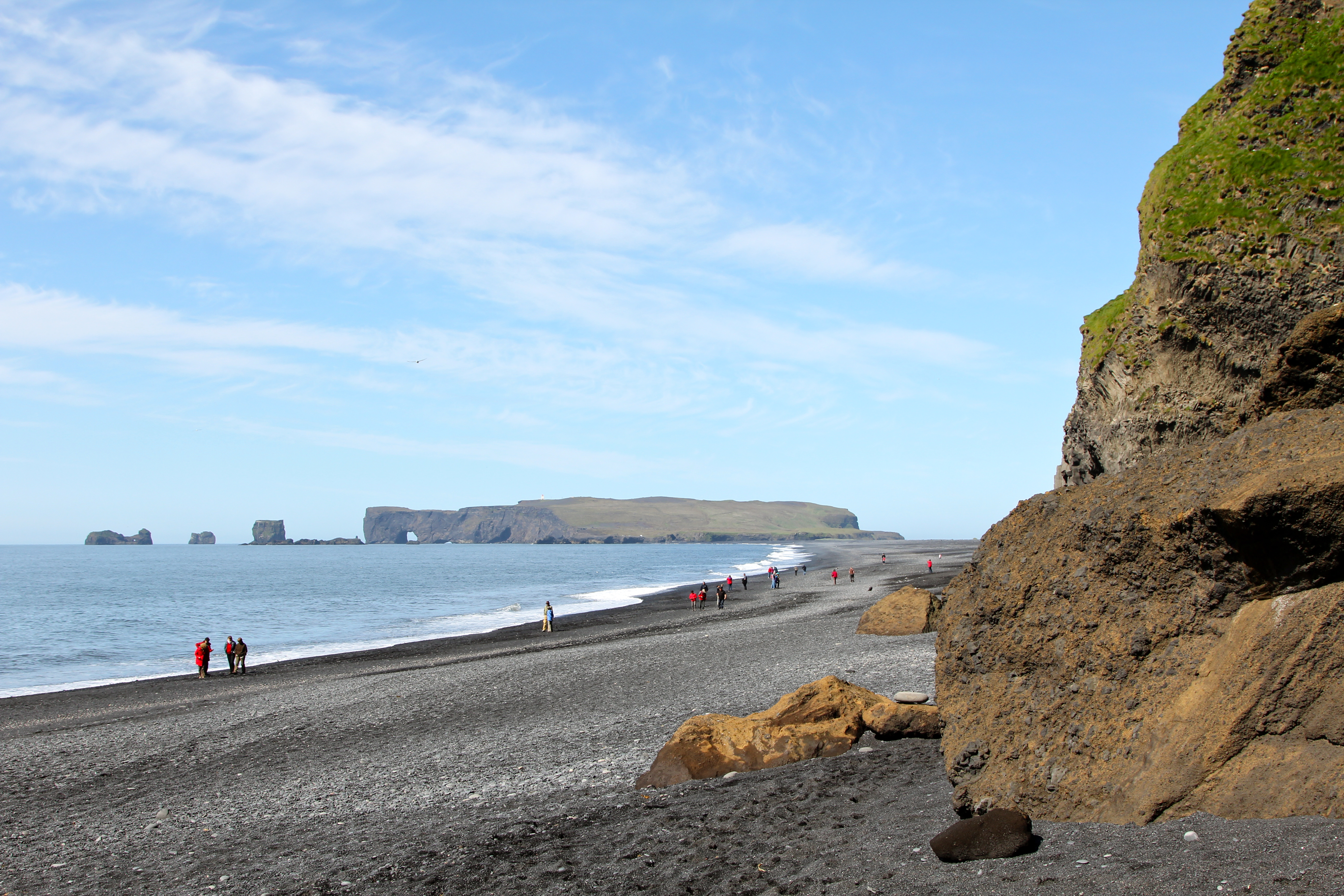 Bij laag water schijn je voor de rotsen langs door te kunnen lopen naar het strand met zijn hele mooie basaltformaties. Wij moesten omrijden. Het was een mooie dag en zondag, gezellige drukte op het strand. Deze plek is kennelijk voor de IJslanders ook een geliefd uitstapje.