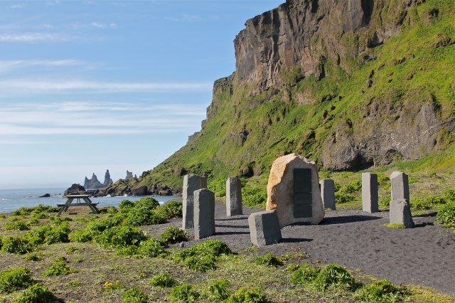 Hoe dichter we bij Vik ( volledige naam Vik í Mýrdal = baai in het veendal) komen hoe vriendelijker het landschap weer wordt. De camping waar we overnachten ligt in een groen gebied, een mooi plekje! Ligt aan de voet van groene bergen en nodigt uit tot een wandeling. Ik had hier wel een dagje langer willen blijven.