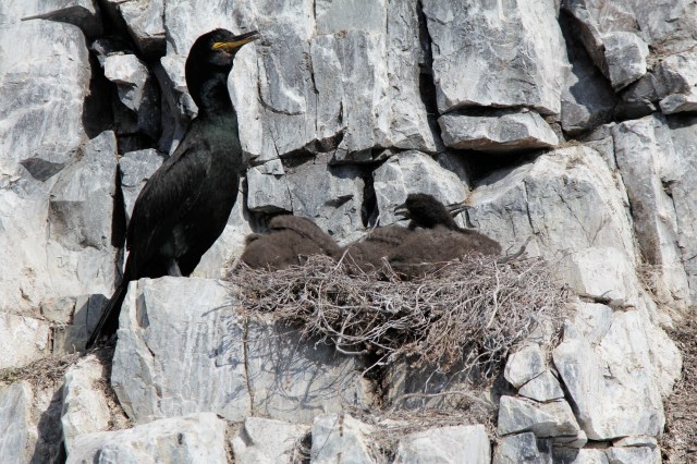 Veel vogels maar ik geloof nog steeds niet dat er ook echt een zee adelaar zat. Wel een kuifaalscholver.