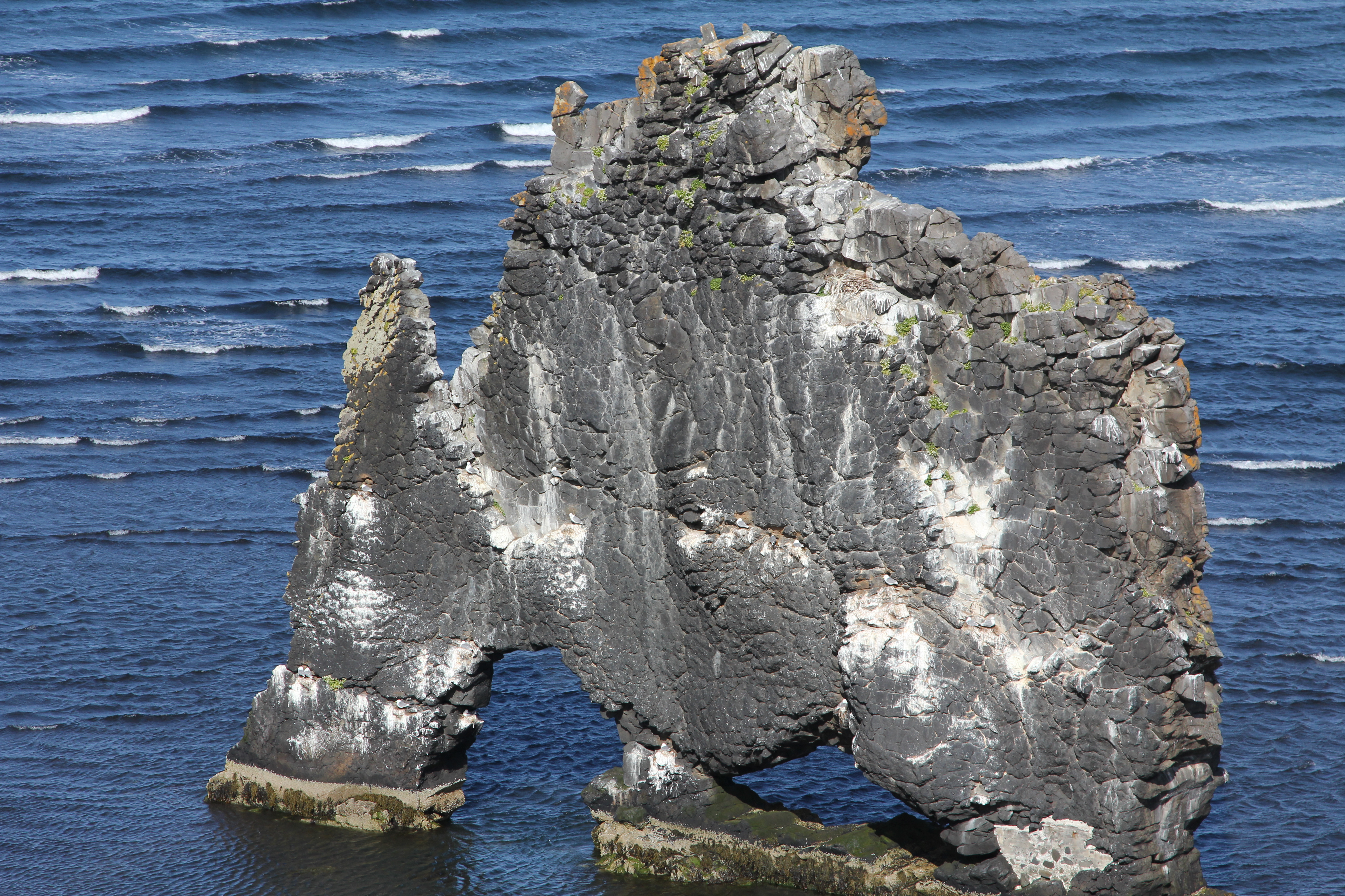 Zij wijzen ons ook op een oude watermolen. De 72 gaat over in de gravelweg 711 die we helemaal rond rijden. Veel kilometers maar het leverde niet veel op, of het moet Hvirserkur zijn: een rots die je op veel promotiemateriaal over IJsland ziet.
