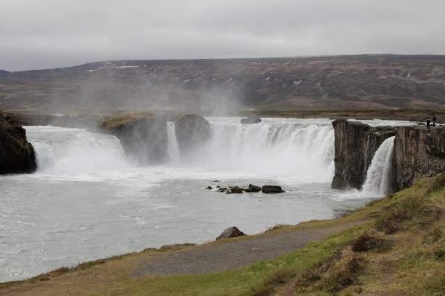 Een korte rit vandaag, mooi tijd om nog even door de stad te lopen, wijn te kopen (veel te duur) en even bij de bookshop langs. Maar goed dat we dat gedaan hebben, het is nog goed weer , richting Husavik wordt dat wel anders. Het is koud en het regent als we daar op de camping aankomen. Onderweg een stop bij de Godafoss.