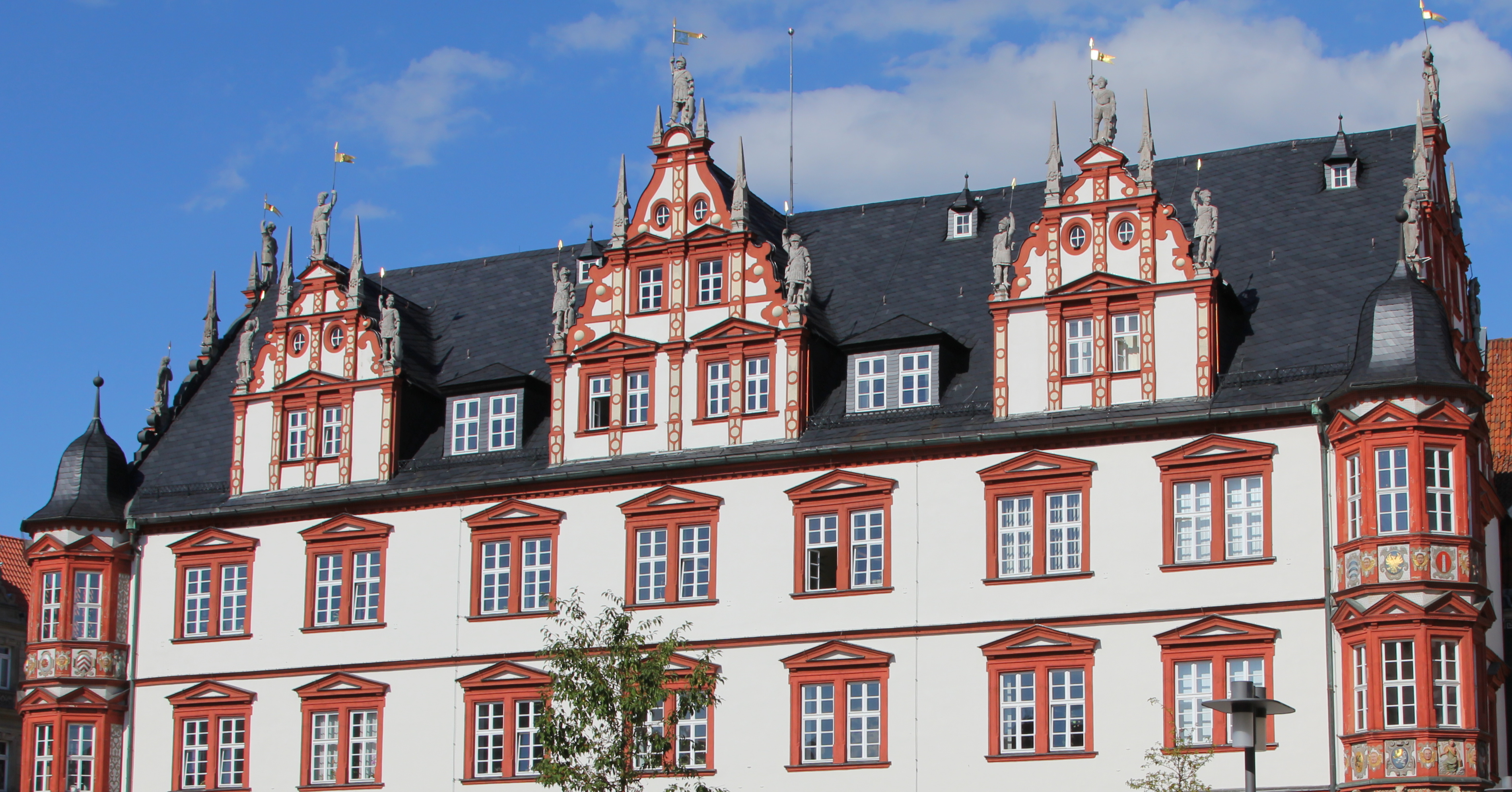 In Coburg lopen we na bekijken van het centrum met zijn mooie marktplaats naar het Slot Ehrenburg.