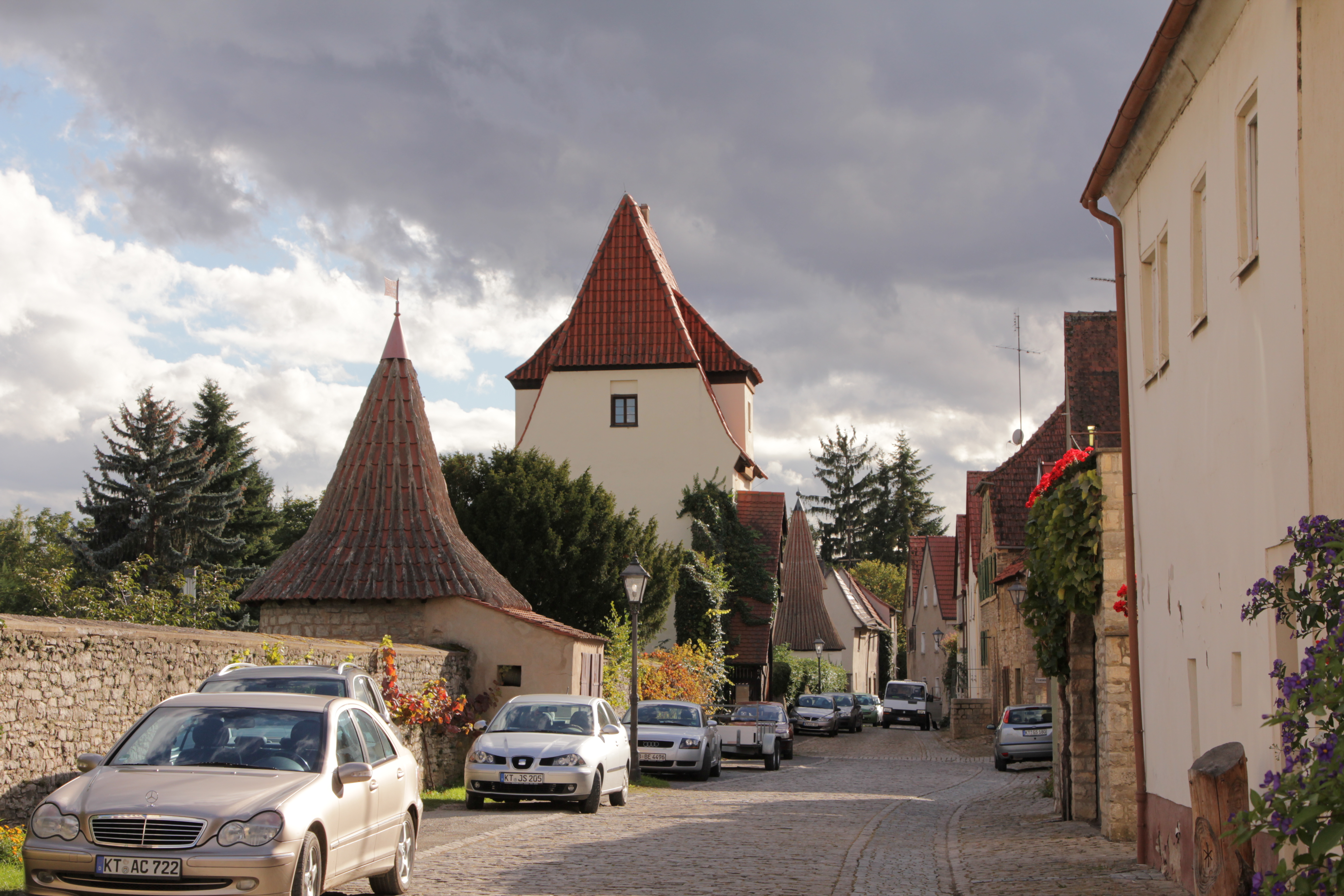 19-09-12. Geen snelwegen meer vandaag, via mooie binnenwegen rijden we naar Sesslach ten zuidwesten van Coburg. Een erg mooi nog volledig ommuurd plaatsje, ook de vier poorten zijn nog volledig in tact.