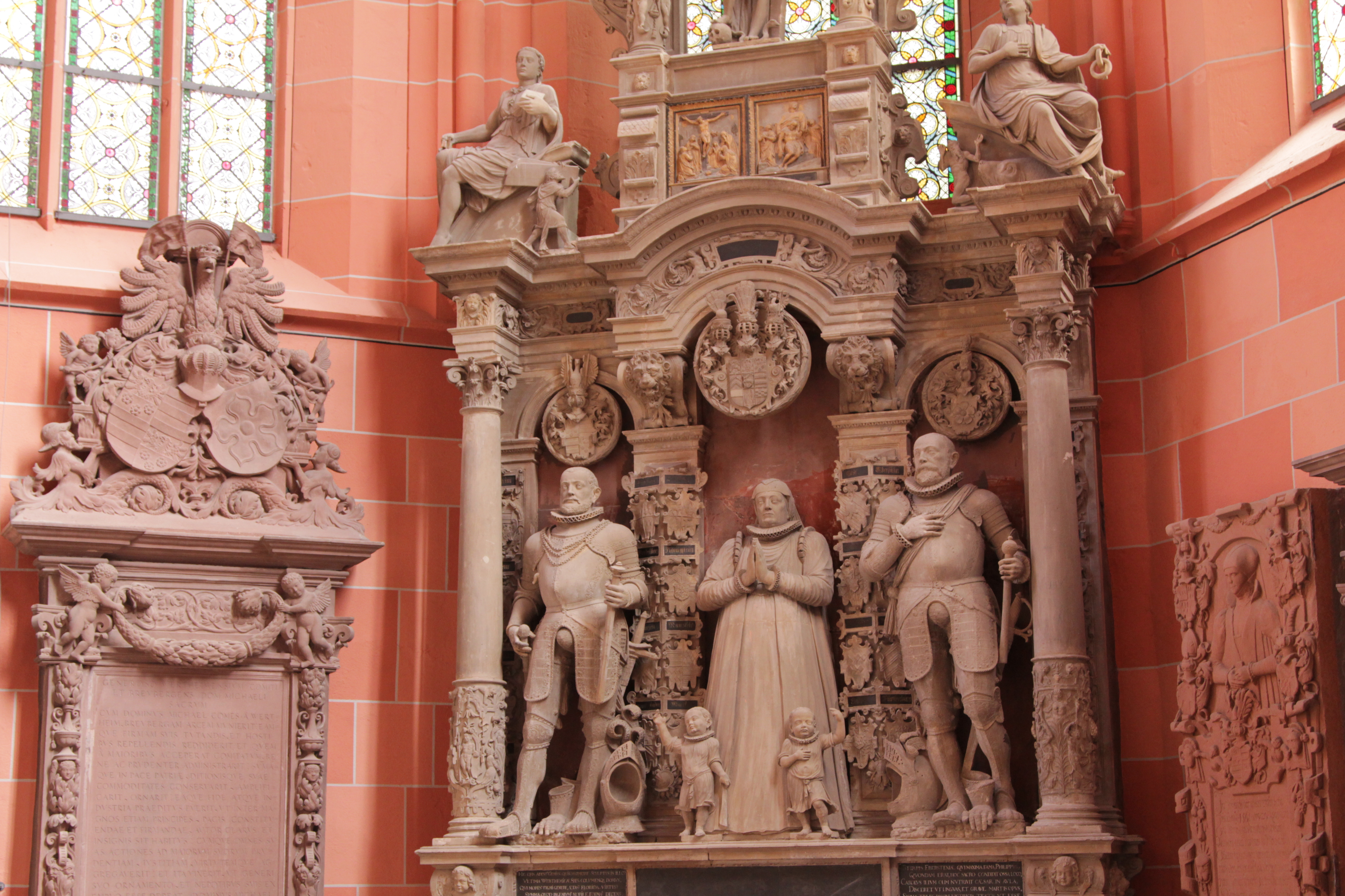 De Stiftskirche is van een opvallend rode steen. Als je Wertheim voorbij rijdt dan zie je langs de Main opeens rode rotswanden.