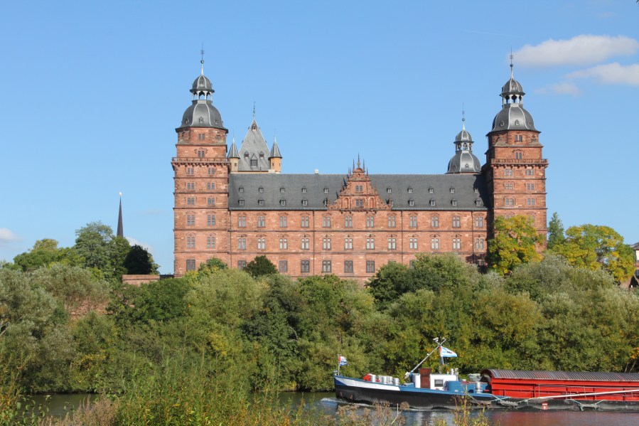 Terug op de camperplaats besluiten we vanwege de drilboor die de oude brug in Klingenwerk moest afbreken, verder te gaan naar Aschaffenburg. Het einddoel van onze reis. De camperplaats hier is prima. Schloss Johannisburg domineert de skyline van deze plaats.