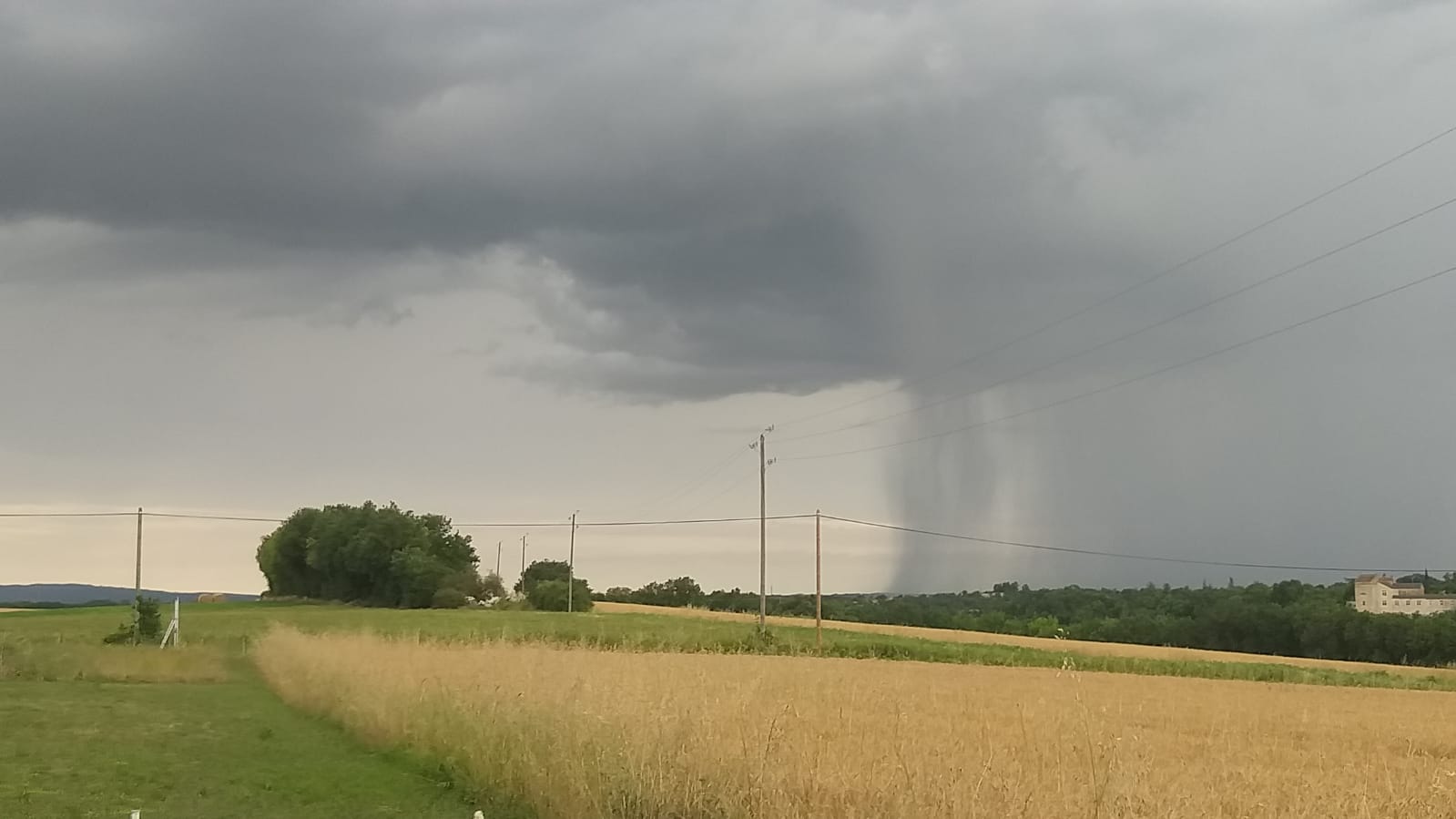 Het welkomstdiner op zaterdagavond paste wel in mijn straatje. Een heerlijke stoofpot met couscous, tomatensoepje vooraf en lekker gebak voor toe. De maaltijd begon op het terras en eindigde binnen. Het was erg warm geweest die dag en ’s avonds opeens een donkere lucht. Gauw alles dicht bij de camper, net op tijd voor het onweer en flinke hagel. Voordeel van mijn plekje bleek nu wel. De parkeerplaats, goed verhard, bleef redelijk stevig, bij de randen dikke modderboel.