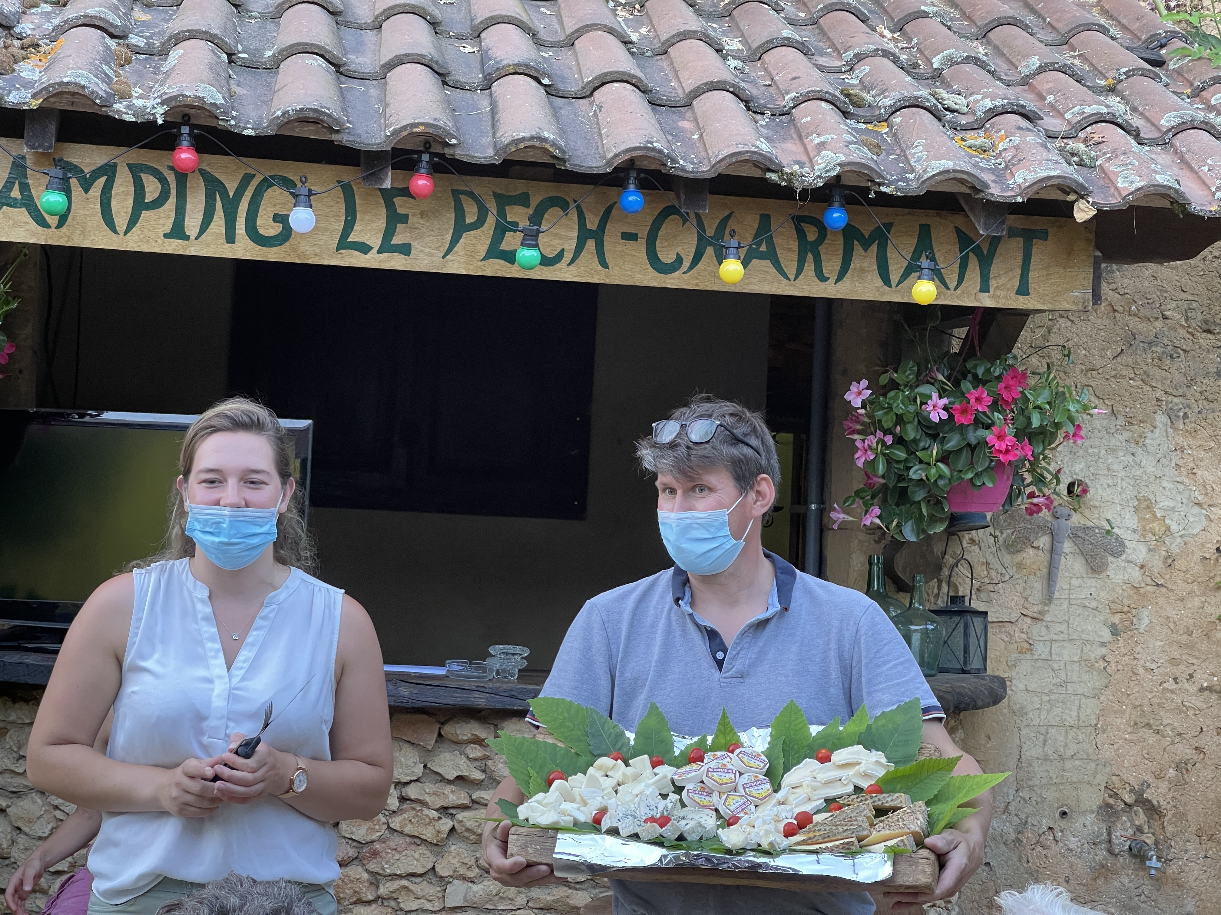 Op deze locatie merk je meteen dat er nog praktisch geen toerisme is in Frankrijk. Thuis in Nederland zijn de mensen al met zijn allen op stap. Daar is op geen camping een plek te vinden maar hier in Frankrijk zijn de campings leeg en nauwelijks publiek bij de attracties. We waren blij dat er met deze hitte nog een terras open was. ’s avonds weer een diner van de camping, echt weer erg lekker.