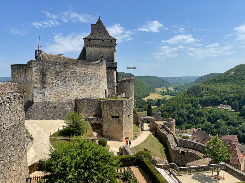 Woensdag 16 juni een excursie naar Kasteel Castelnaud. Bloedheet, de zon is ongenadig en je moet daar nogal wat klimmen en trap lopen. Dit moet je gewoon ’s morgens doen. Het kasteel is streng, typisch een verdedigingswerk.