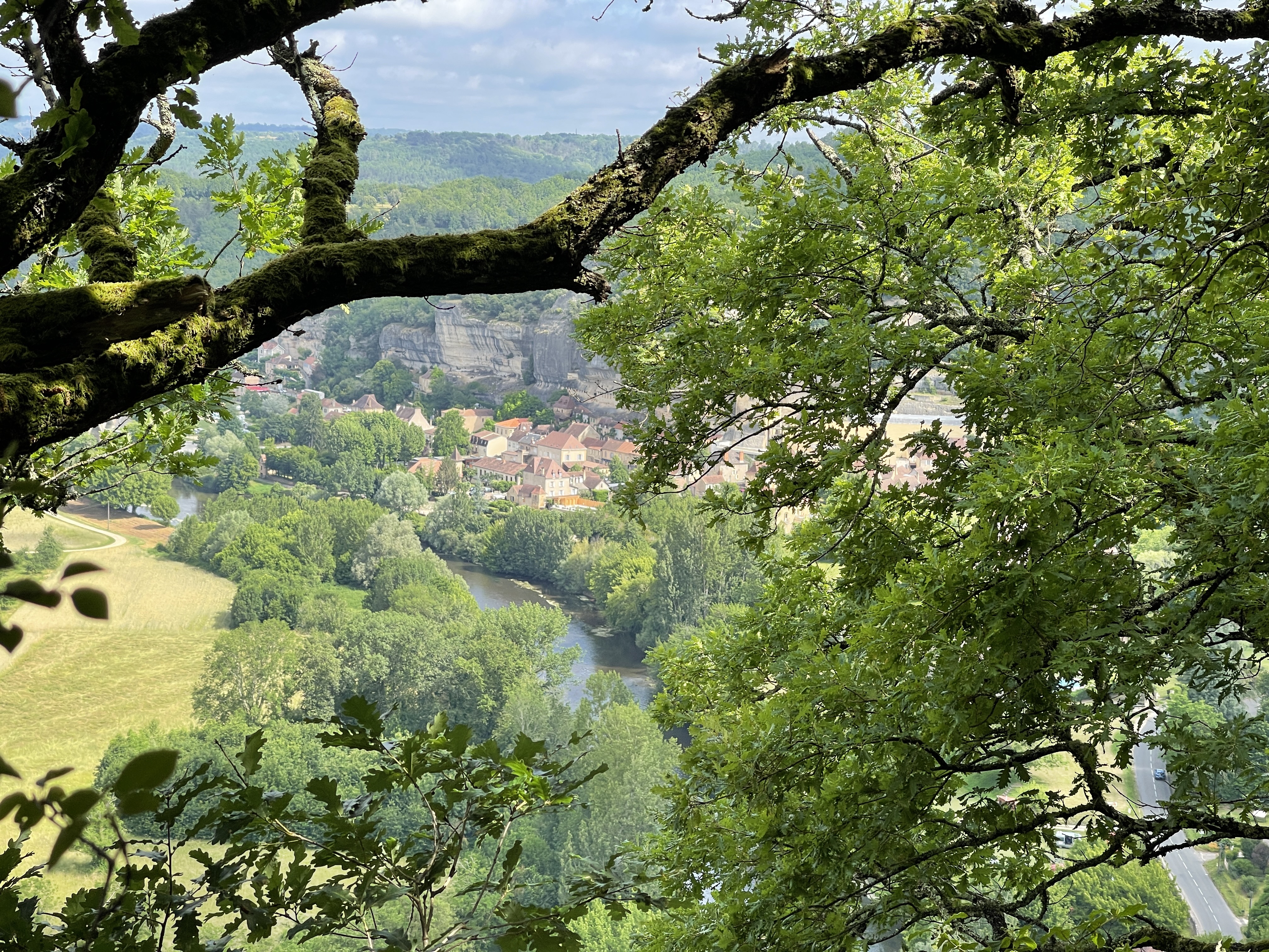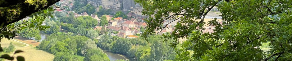 18 juni een wandeling gemaakt in de omringende bossen van de camping naar een prachtig uitzichtpunt. Les Eyzies en de rivier de Vezère lagen diep beneden aan onze voeten. Met een aperitief om zes uur nemen we afscheid van deze camping. Een moeizame eerste week, camping is toch minder geschikt voor campers. Voelde me wat opgesloten. Met een camper maak je niet zo gauw uitstapjes. Van de camping af betekent ook doorrijden naar een volgende plek. Vanaf deze camping was het te lastig om “even” naar beneden naar het stadje te fietsen.