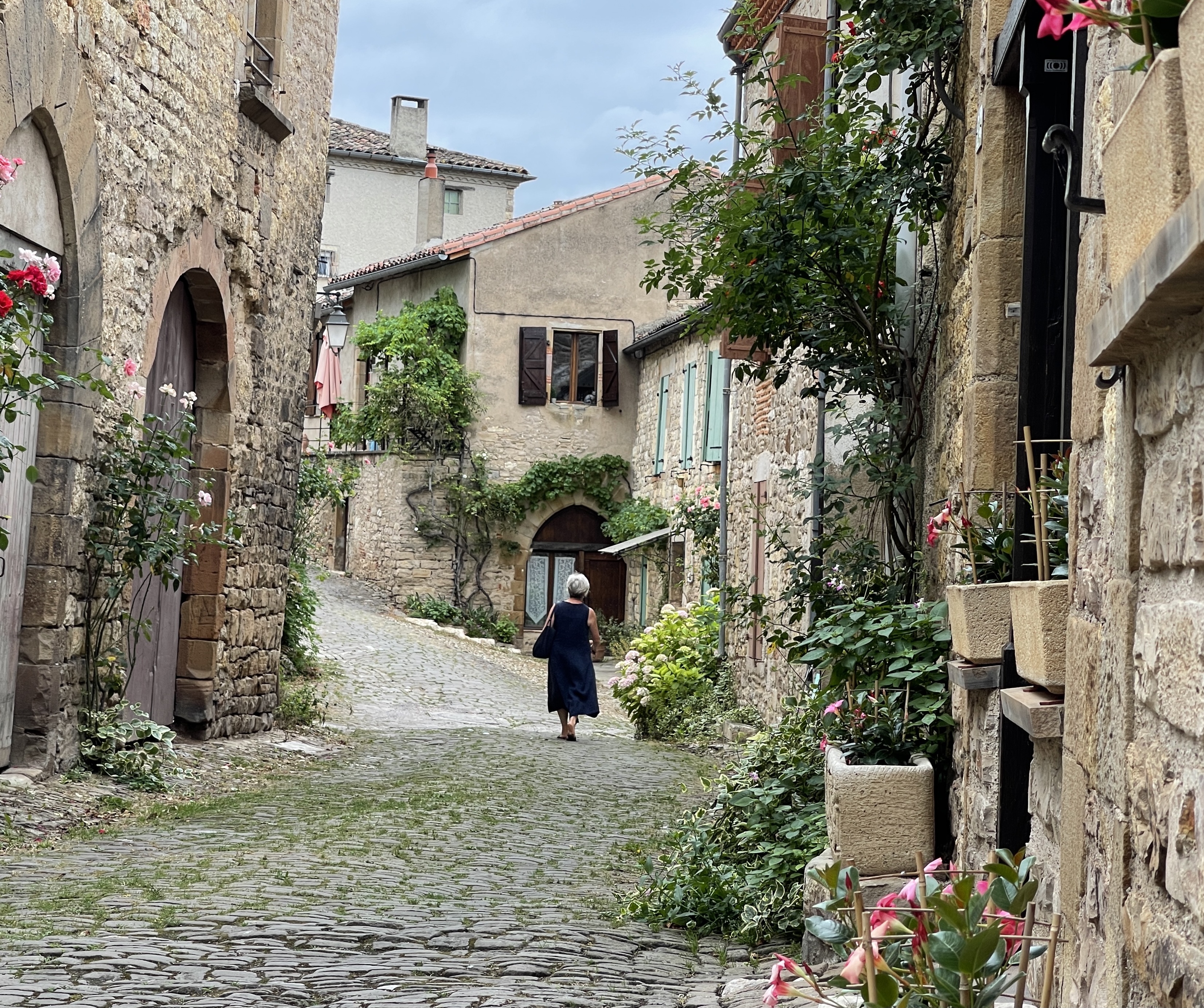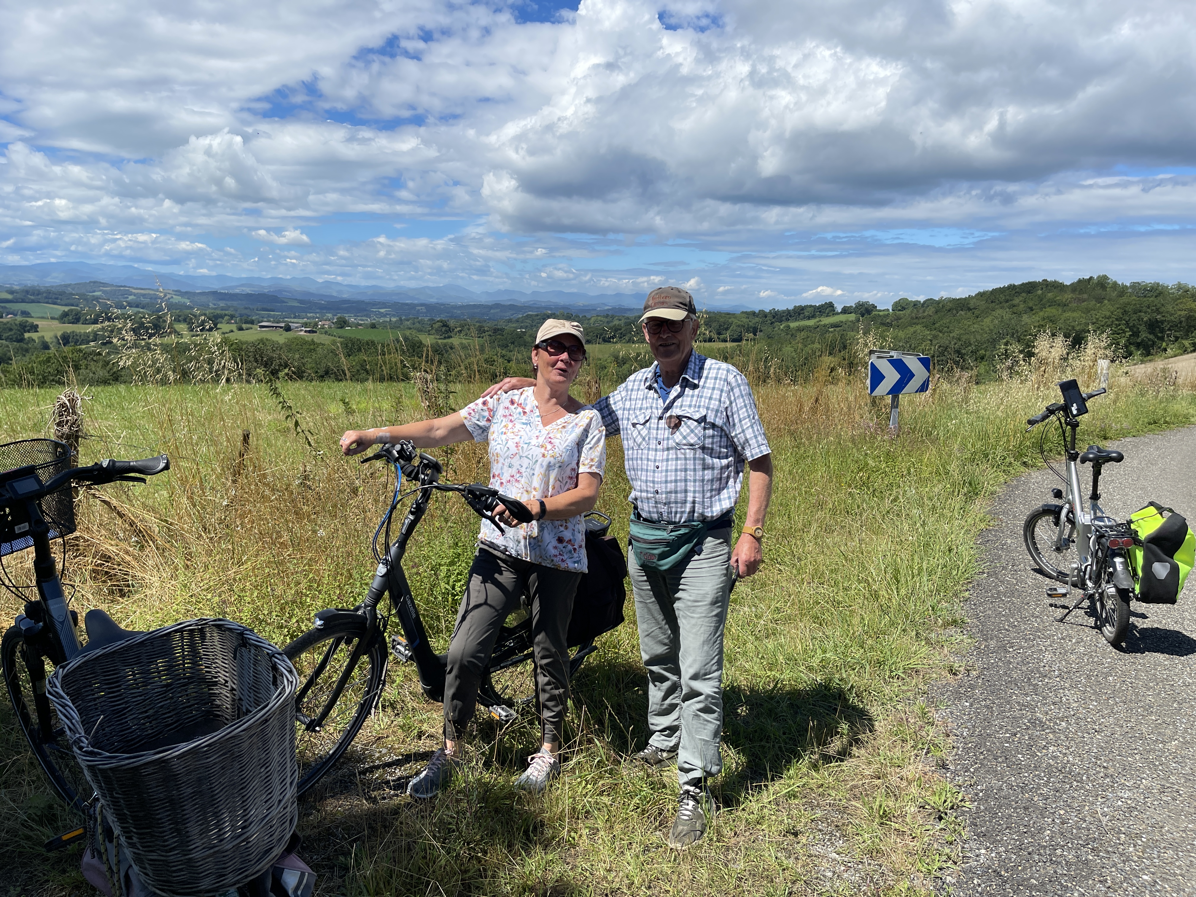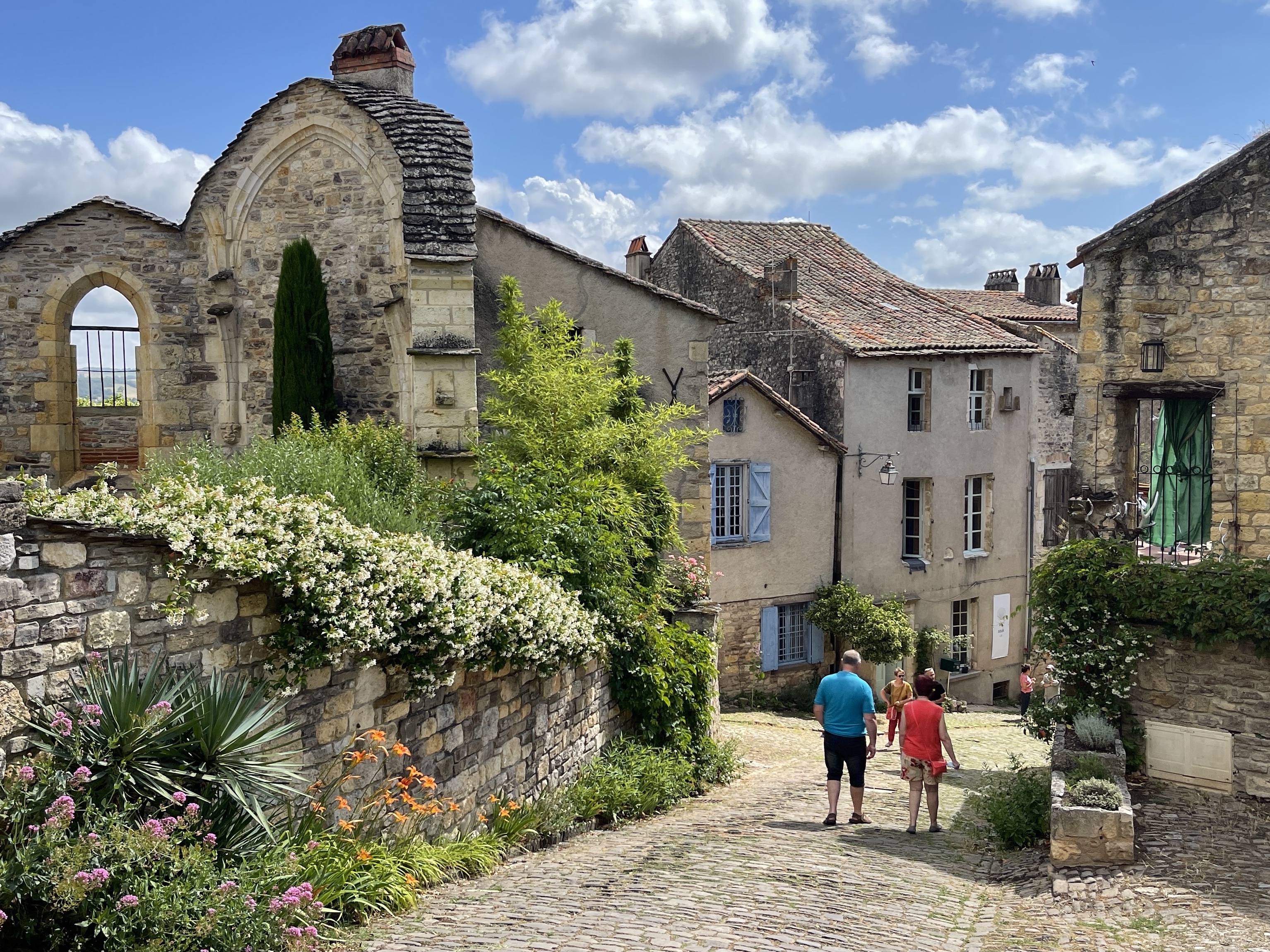 Zondag besluiten we met een paar om vast op de fiets te gaan kijken of het te doen is in deze omgeving te fietsen. Ging prima maar je hebt wel een goede e-bike nodig. De lichte fietsen trokken het niet. Mooie rustige weg vanaf de camping naar Cordes sur Ciel. In het dorp de fiets geparkeerd en vervolgens de steile weg naar boven gelopen. Voor een zondag is het maar stil in het dorp. Corona hakt erin. Weinig toeristen en de restaurantjes veelal dicht.