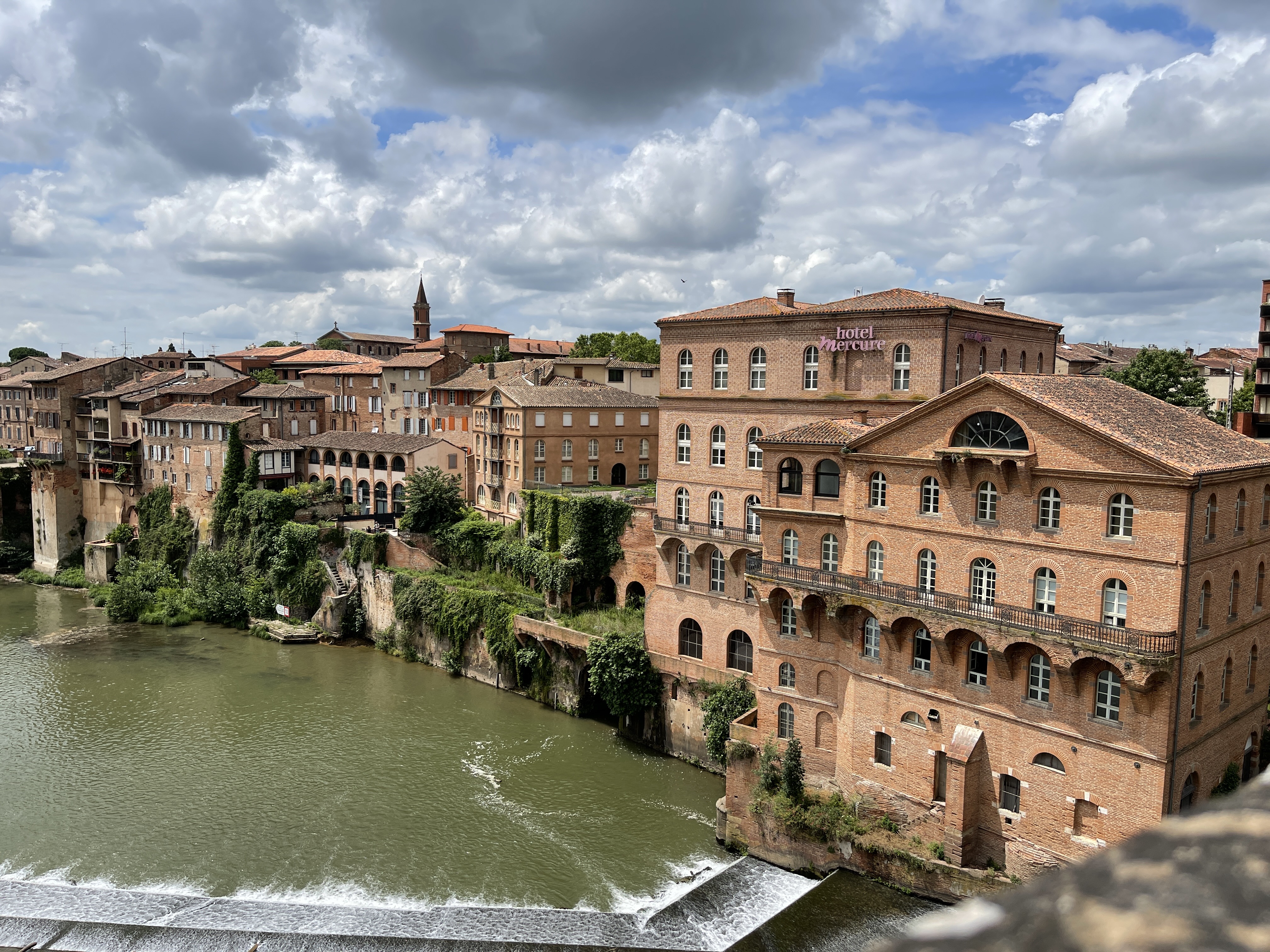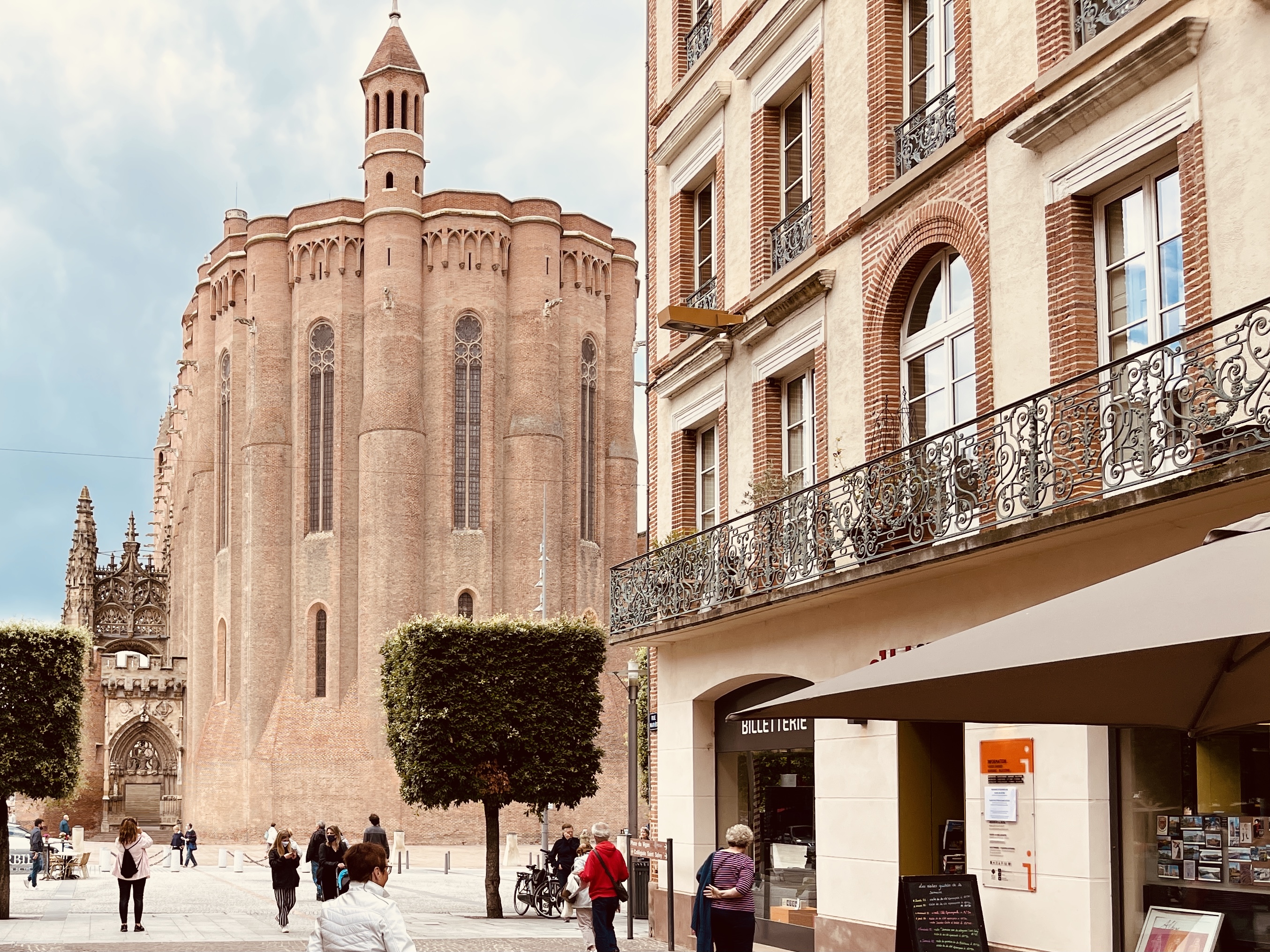 24 juni, met de bus naar Albi, de rode stad. Voor twee euro brengt de luxe openbare Dusbus je naar de stad, uitstappen bij het busstation en de opstaphalte vlakbij aan de doorgaande de weg.