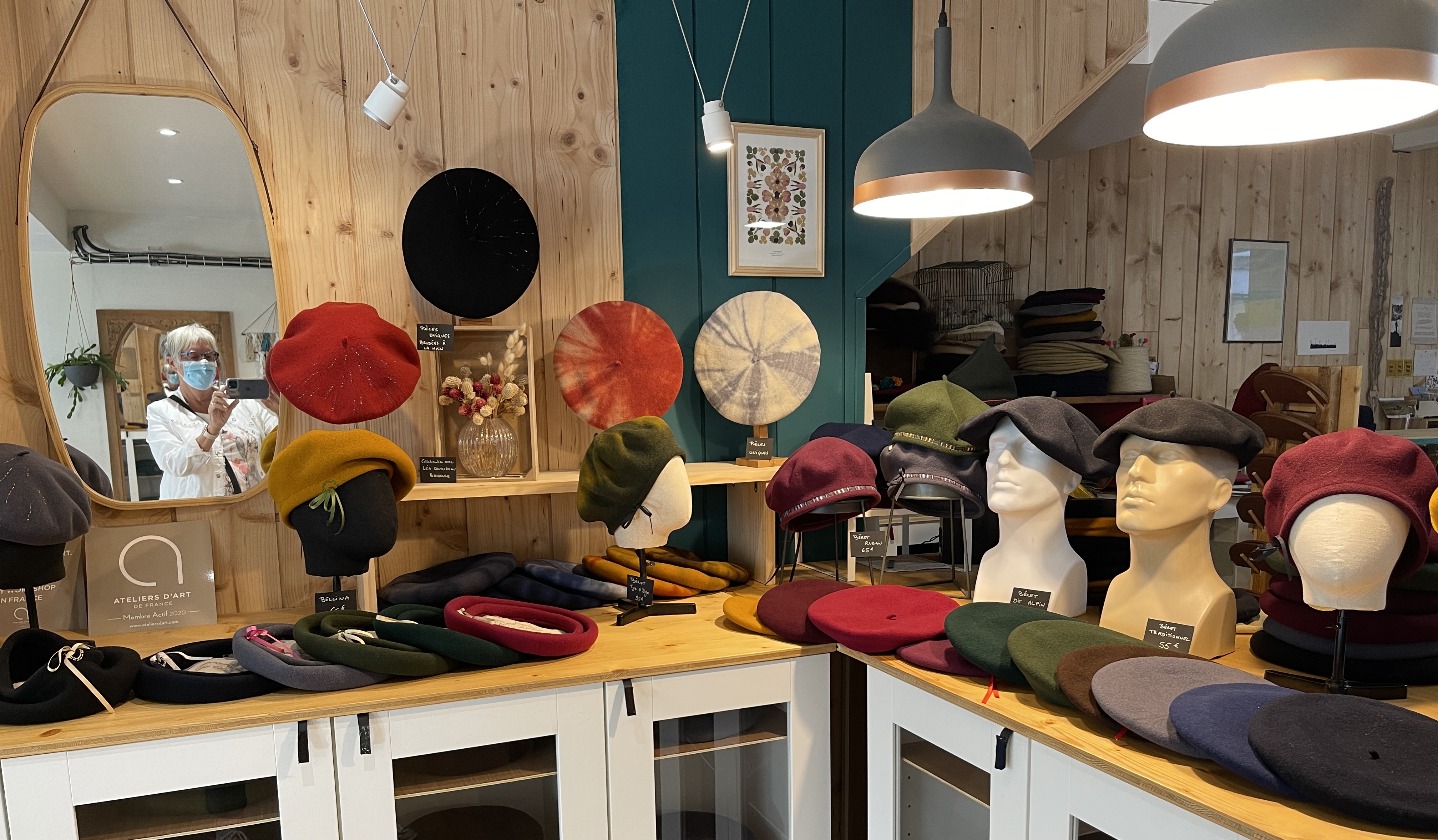 30 juni. Een dagje uit met de bus! Dat heb ik niet vaak mee gemaakt. We krijgen een gevarieerde bustocht. Het begint met een stop bij een baretten werkplaats. Alles wordt met de hand gedaan.