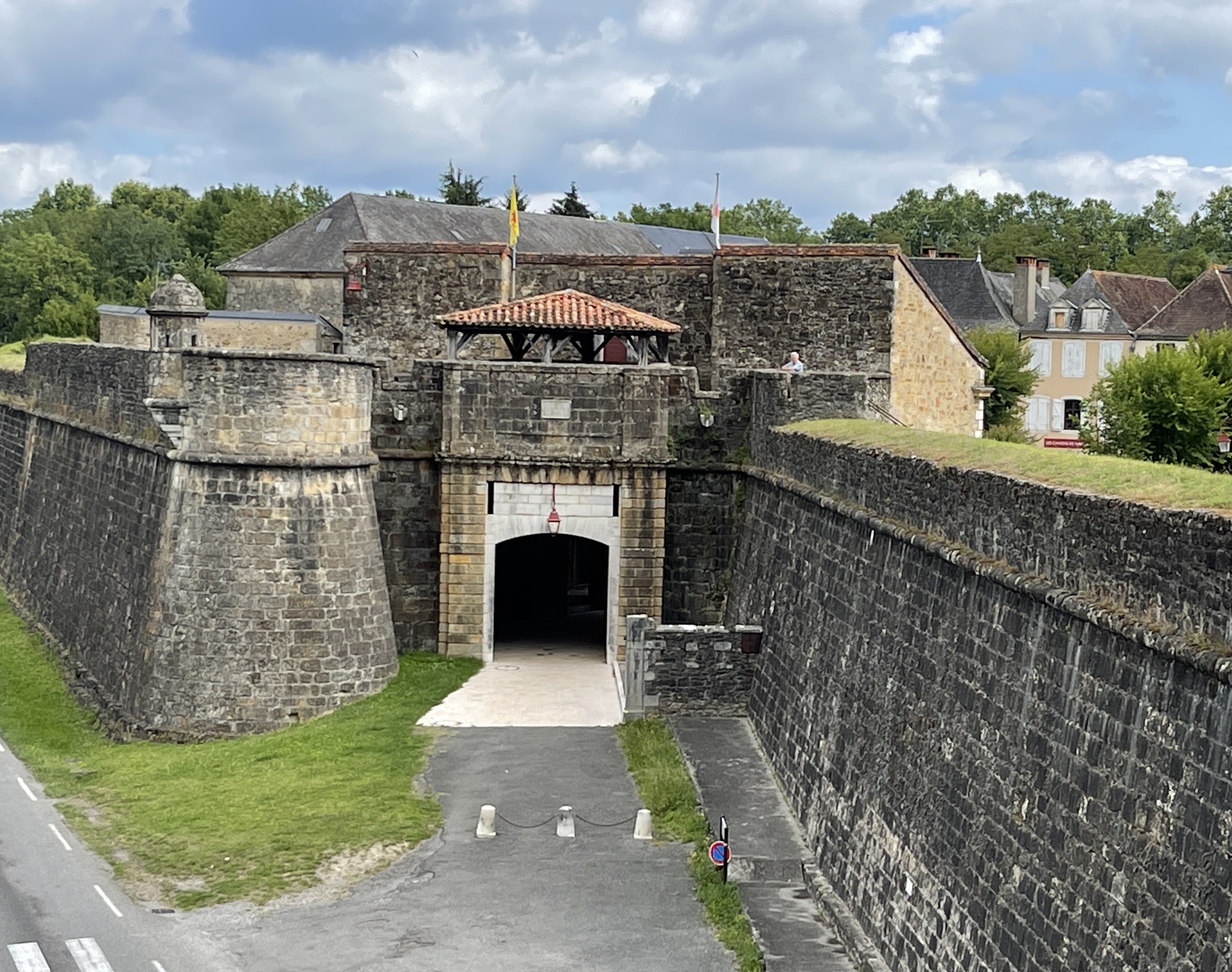 Daarna naar Navarrenx, lid van de “mooiste dorpen van Frankrijk”. Het is een versterkte plaats en je moet dus zeker over de muren lopen naar de Porte San Antoine. Het ligt aan de rivier de Gave waar veel op zalm gevist wordt en kampioenschappen zalm vissen gehouden worden.