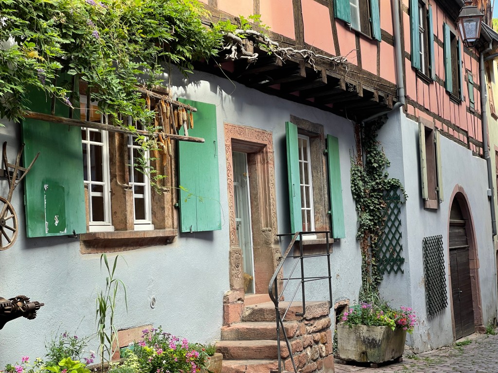 Vanmorgen moesten we om 12 uur van de camping af maar we wilden voor die tijd naar Riquewihr. Op de fiets 2 km van de camping dus dat is prima gelukt. Ik was hier in 2005 in de herfst met Gradus. Doodstil in het dorp. In de herfst met de mooi gekleurde wijnranken zou ik een bezoek eerder aanbevelen. Riquewihr is klein en mooi.