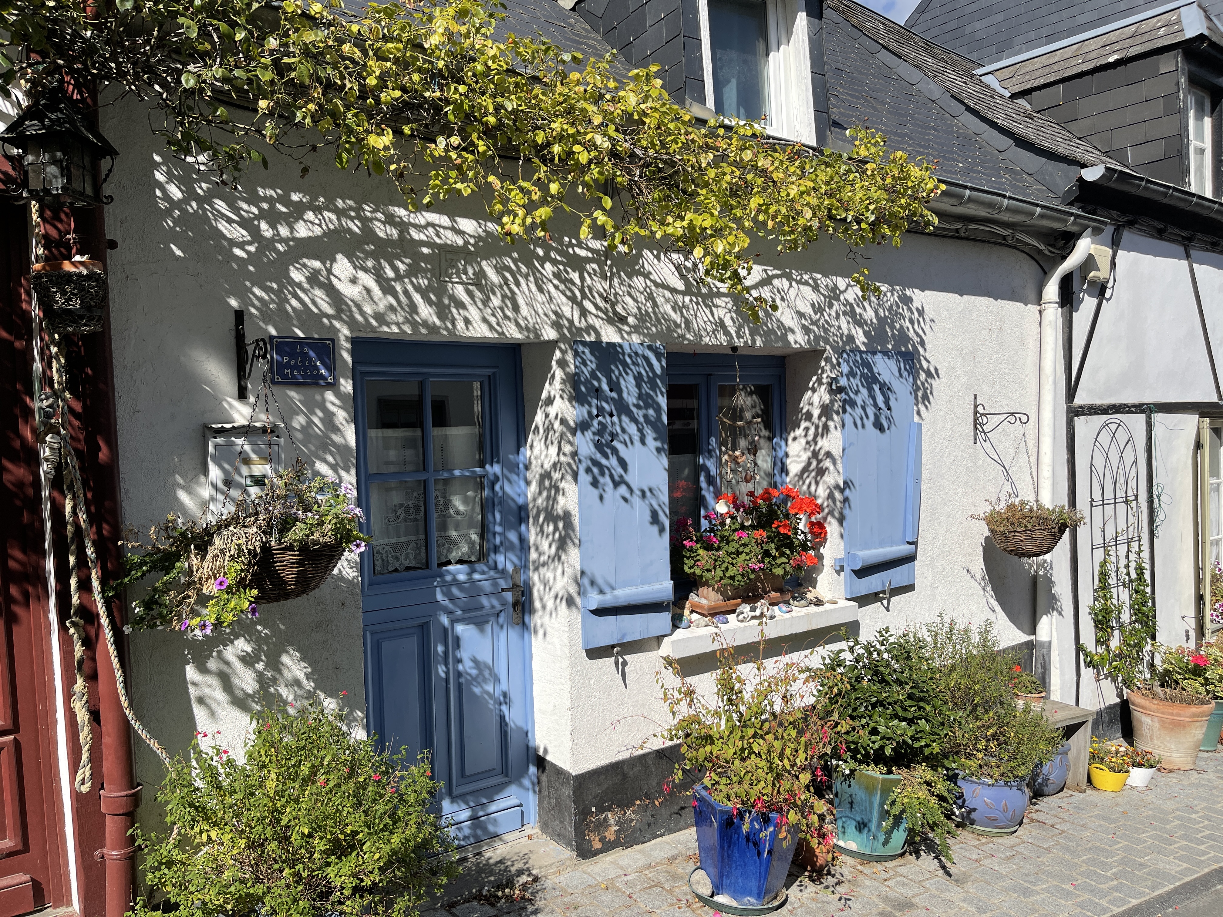 28 sept Langs de supermarkt en door naar Camping Cognac. Parkachtige camping. Tussen de middag hebben Jolanda en ik genoten van garnalen gebakken in de knoflook en een breek baquette, Even op plek blijven vandaag en alles in orde maken. De meeste campings sluiten 1 oktober. Morgen de plaats Cognac bezoeken. Helaas hebben we vandaag toch heel veel regen. Later een avondwandeling kunnen maken langs de rivier de Charente. Doorkijkje naar een aardig optrekje.