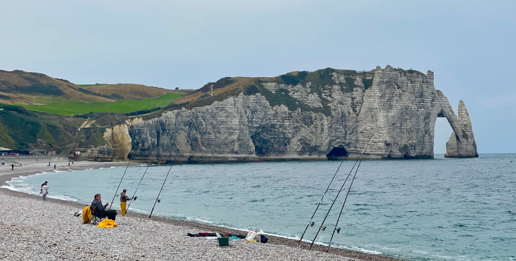 23 september. Onderweg naar Honfleur gestopt bij Etretat. De “olifantenslurf”’zo herkenbaar en dan nu in het echt zien. Niet de eerste keer voor mij voor de anderen wel. Het was licht regenachtig en niet ideaal voor foto’s.Voor een kop café au lait vragen ze in dit super toeristische dorp maar liefst 4,80.