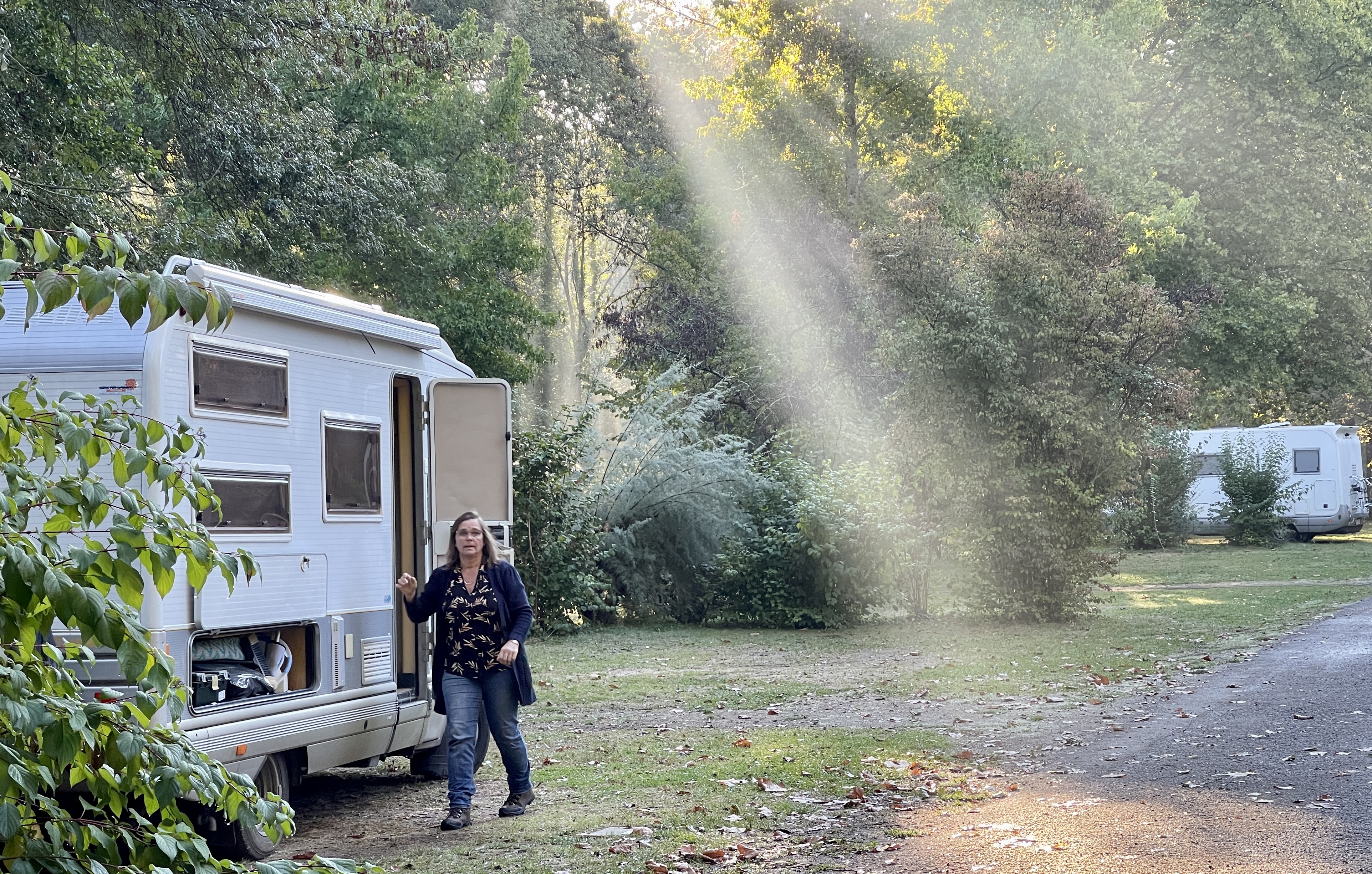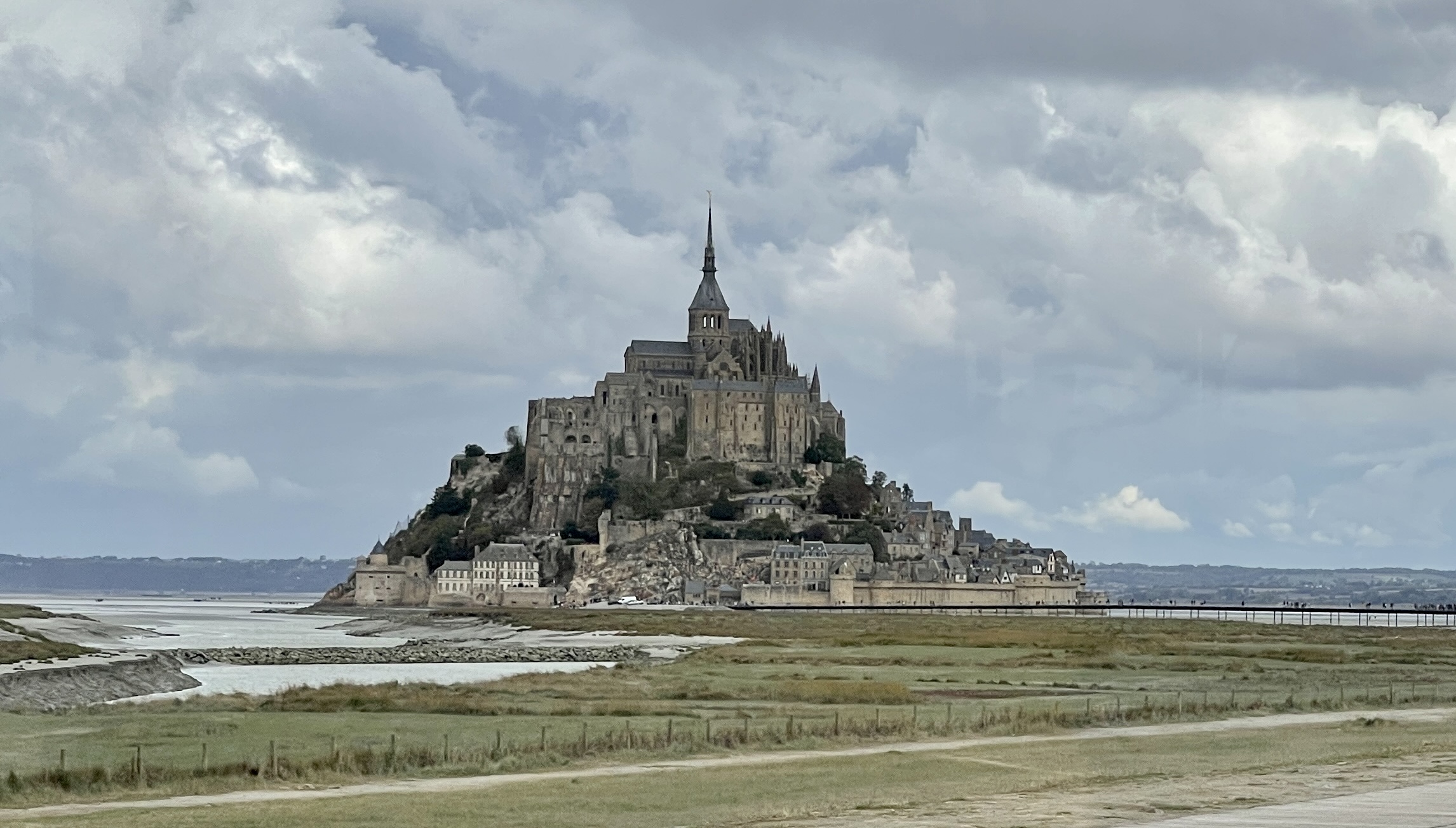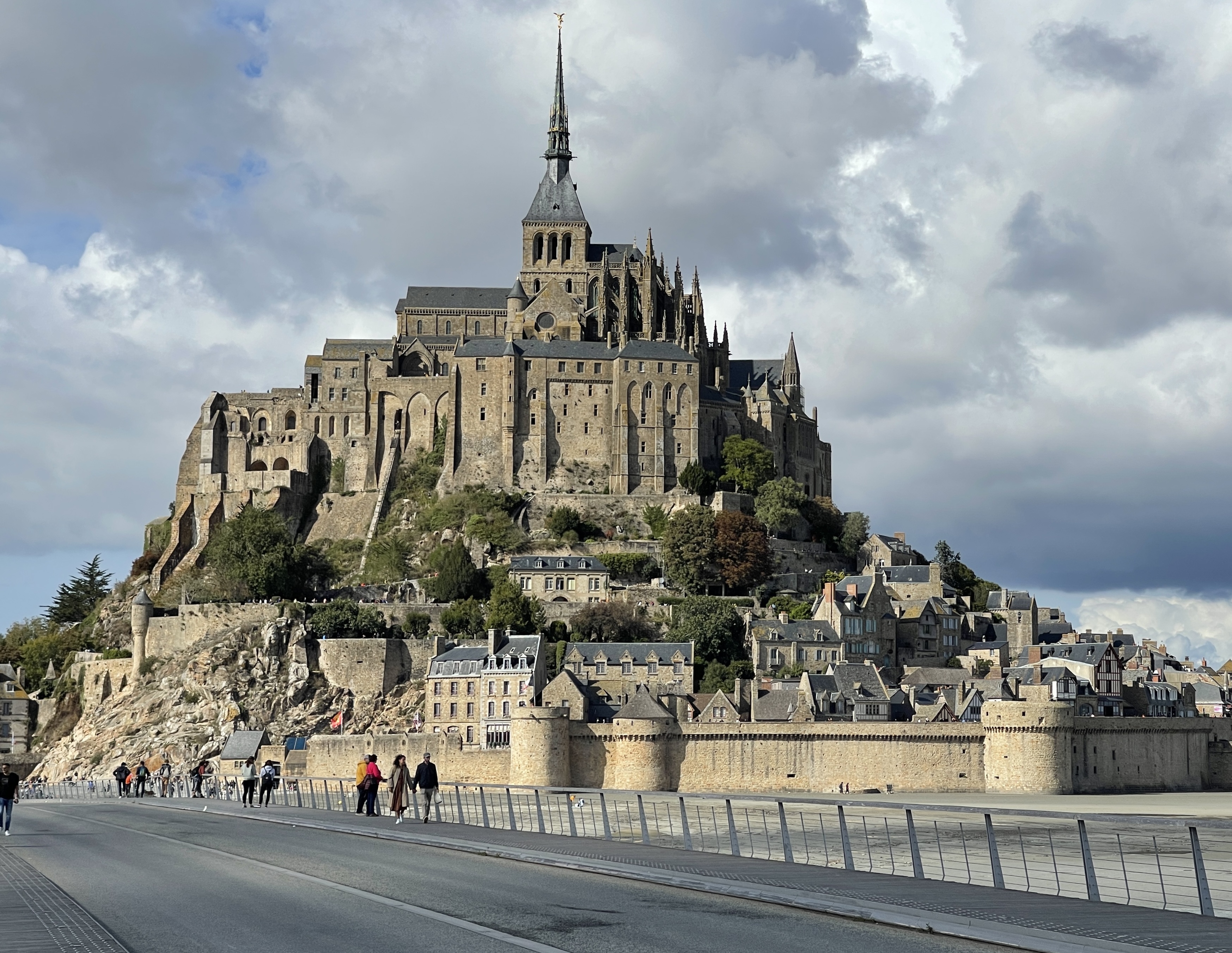 Het was niet de bedoeling om binnendoor naar de Mont-Saint-Michel te rijden maar ik had de TomTom nog op snelwegen uit staan en zo kregen we een mooie route. De camper hebben we geparkeerd op P8 in Beauvoir sitecode 23400. Een enorme parkeerplaats met apart gedeelte voor campers. Gratis shuttle naar de Mont of je gaat fietsen of lopen. Perfect geregeld. Van het trappenlopen naar de Abdij had ik de volgende dag spierpijn. Je hebt boven een mooi uitzicht over het wad, er liepen heel veel wadlopers.We overnachten op de parkeerplaats, wel zo makkelijk.Wel grappig dat wij met zijn 3-en na terugkomst de stoelen buiten hadden gezet en aan de wijn gingen, het maar even duurde of de camperaars om ons heen volgden ons voorbeeld. Na de regen was het lekker in de namiddag zon.