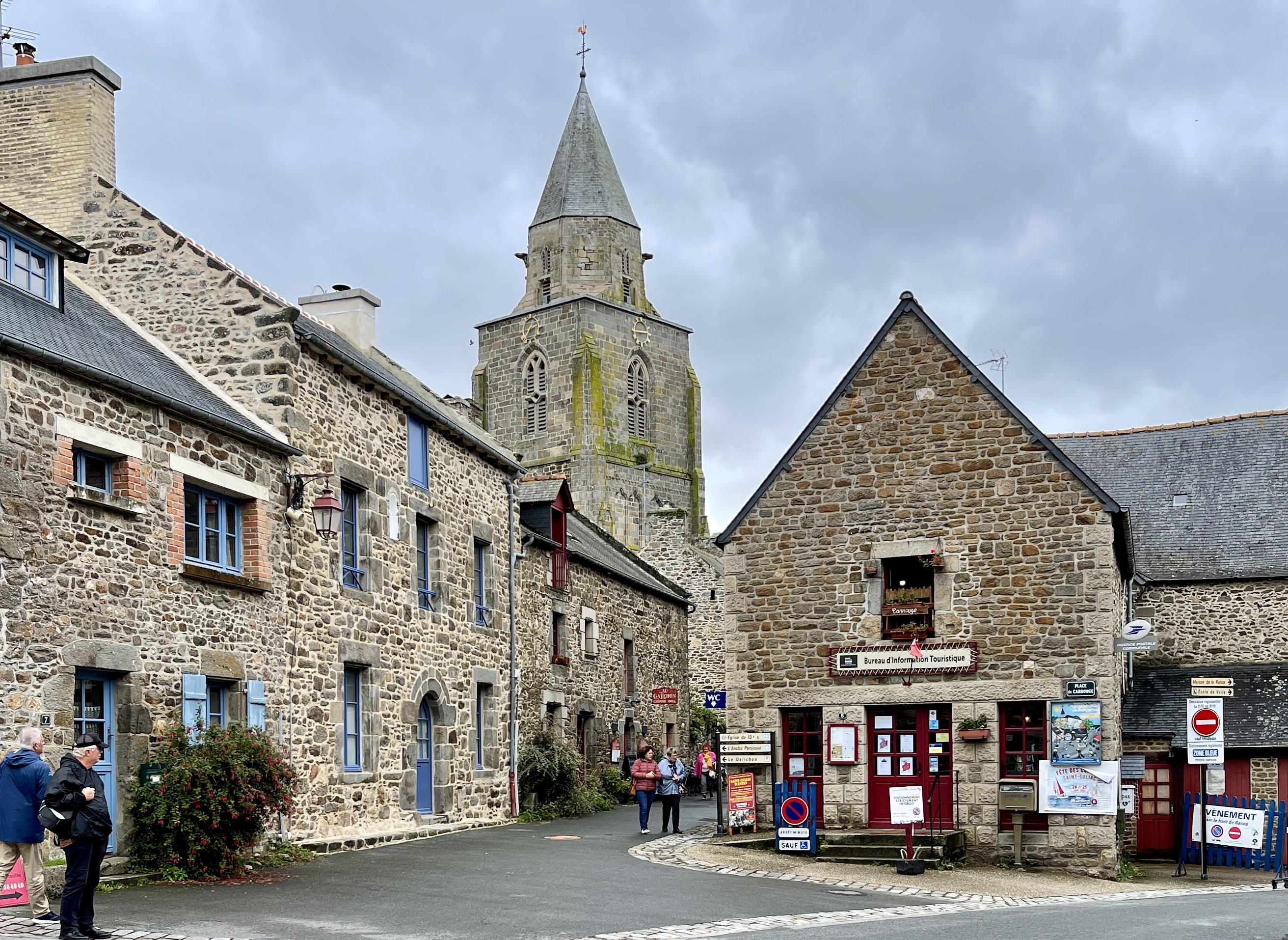 26 sept. Ondanks de regen toch naar Pointe du Grohuin gereden. Onderweg gestopt bij een uitzichtpunt. Koud en veel regen dus geen mooie uitzichten. Voordeel: geen moeilijkheden om de drie campers te parkeren. Via de kustweg naar Saint-Suliac, een oud vissersdorp, gereden. De plaats bekijken hopen we morgen zonder regen te kunnen doen. Vanmiddag lezen en naar de regen kijken, staan op camping municipal les Cours. Toch die middag nog een wandeling kunnen maken,