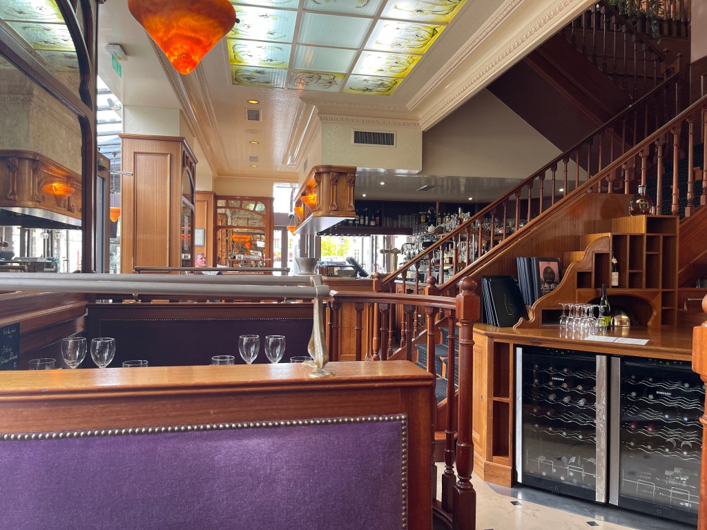 29 sept. Op de fiets via een mooi fietspad langs de Charente naar de plaats Cognac. Daar kostte het even zoeken welke richting we op moesten tot ik het idee kreeg om op de telefoon “stadrondwandeling Cognac” in te voeren. Zo kwam ik op route you terecht en een wandeling van 5,2 km . Een mooie wandeling met Lia als leading Lady. En toen kregen we zin in eten. Restaurant 1 gaf ons een plaats en de kaart en kwamen de bestelling opnemen. Sorry dames geen menu of iets anders vandaag. Onze laatste dag. Restaurant nummer 2. Ober sloeg de deur voor mijn neus dicht maar de ober op het terras vertelde dat dat voor de kou was en dat we binnen konden eten. Maar binnen weer een kwade ober die had er geen zin in. Restaurant drie was midden in de roos. We kregen vriendelijk een tafel toegewezen en kregen de kaart. Ober komt opnemen en zegt dat de keuken gesloten is. Gelukkig ging hij wel naar zijn collega om te overleggen en……we konden bestellen. Voor 85 euro een perfect drie gangen menu (voor drie personen) met een fles wijn. En in een leuke entourage. We hadden het niet beter kunnen treffen. Ik had een flink stuk kabeljauw, goed gegaard. Toch ook niet het goedkoopste gerecht. Toe kregen we een soort grand dessert. Het overnachten wordt ons nu wel lastig gemaakt, De meeste campings en veel restaurants hebben vandaag hun laatste werkdag.