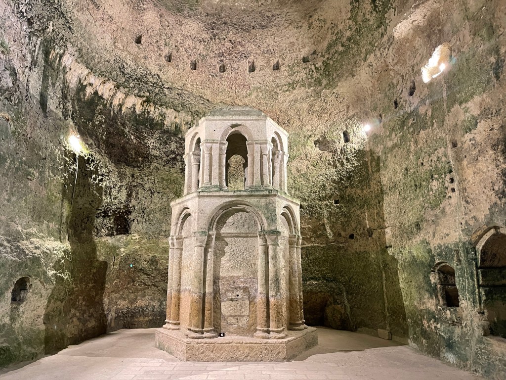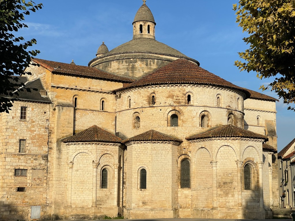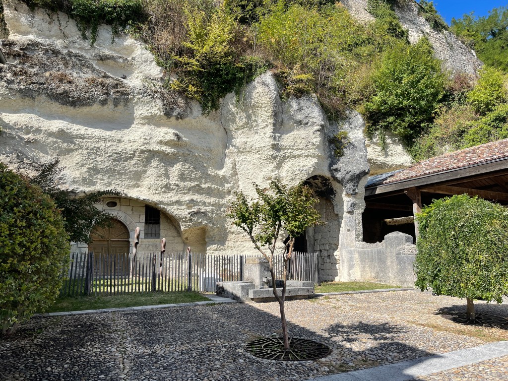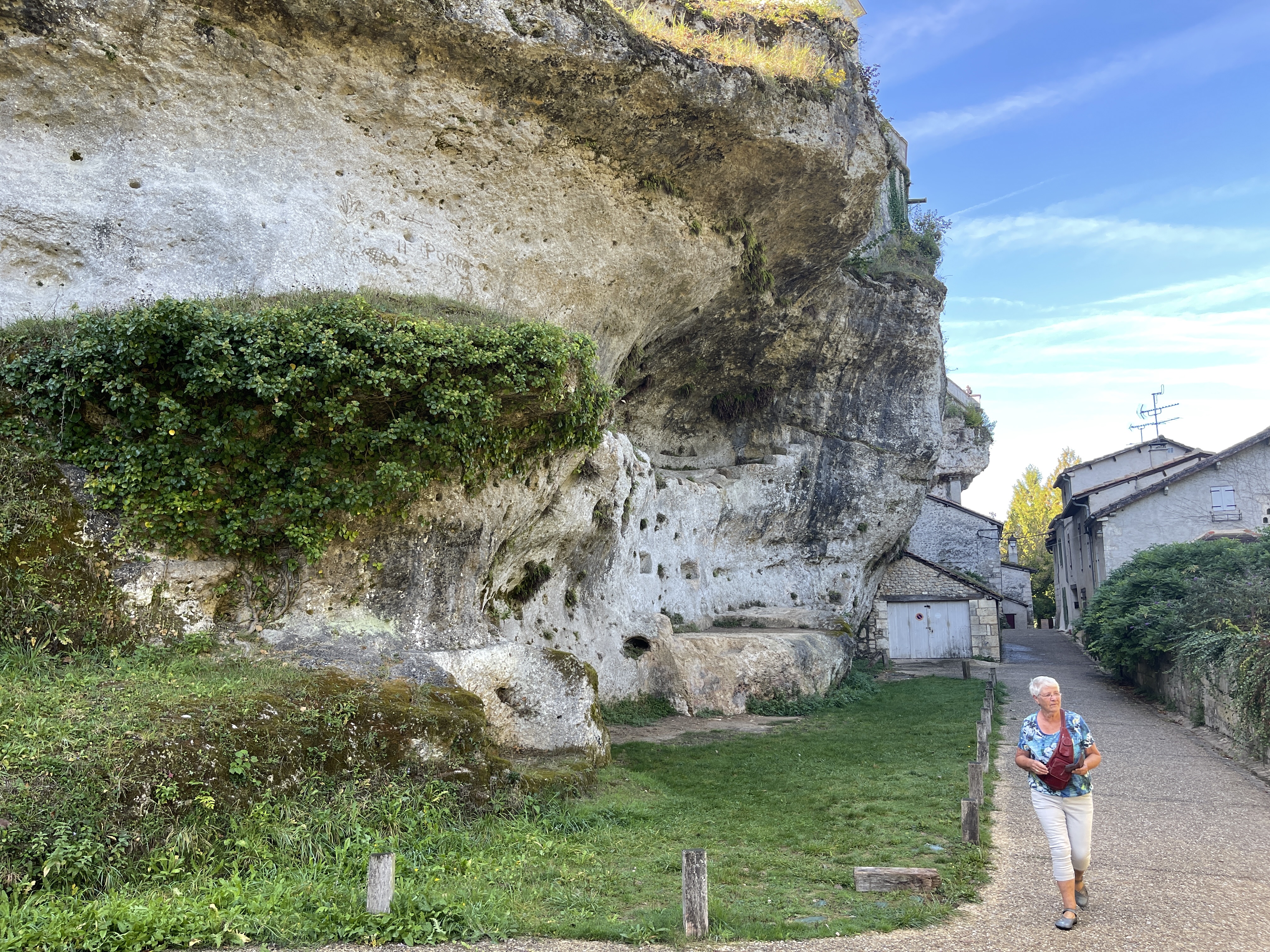 30 sept. Koud vanmorgen maar wel zon. Een mooie rit naar Aubeterre sur Dronne, een van de mooiste dorpen in Frankrijk. Daar bezochten we de monolithe kerk van St.Jean. Indrukwekkend. Helemaal uitgehouwen in de rotsen. Uit 1100. We staan op een parkeerplaats (3979) voor een camping die pas na 30 sept gebruikt mag worden door campers. De camping is dan gesloten. Prima plek aan de rivier. Aan de andere kant van de weg een CP waar je het hele jaar mag staan.