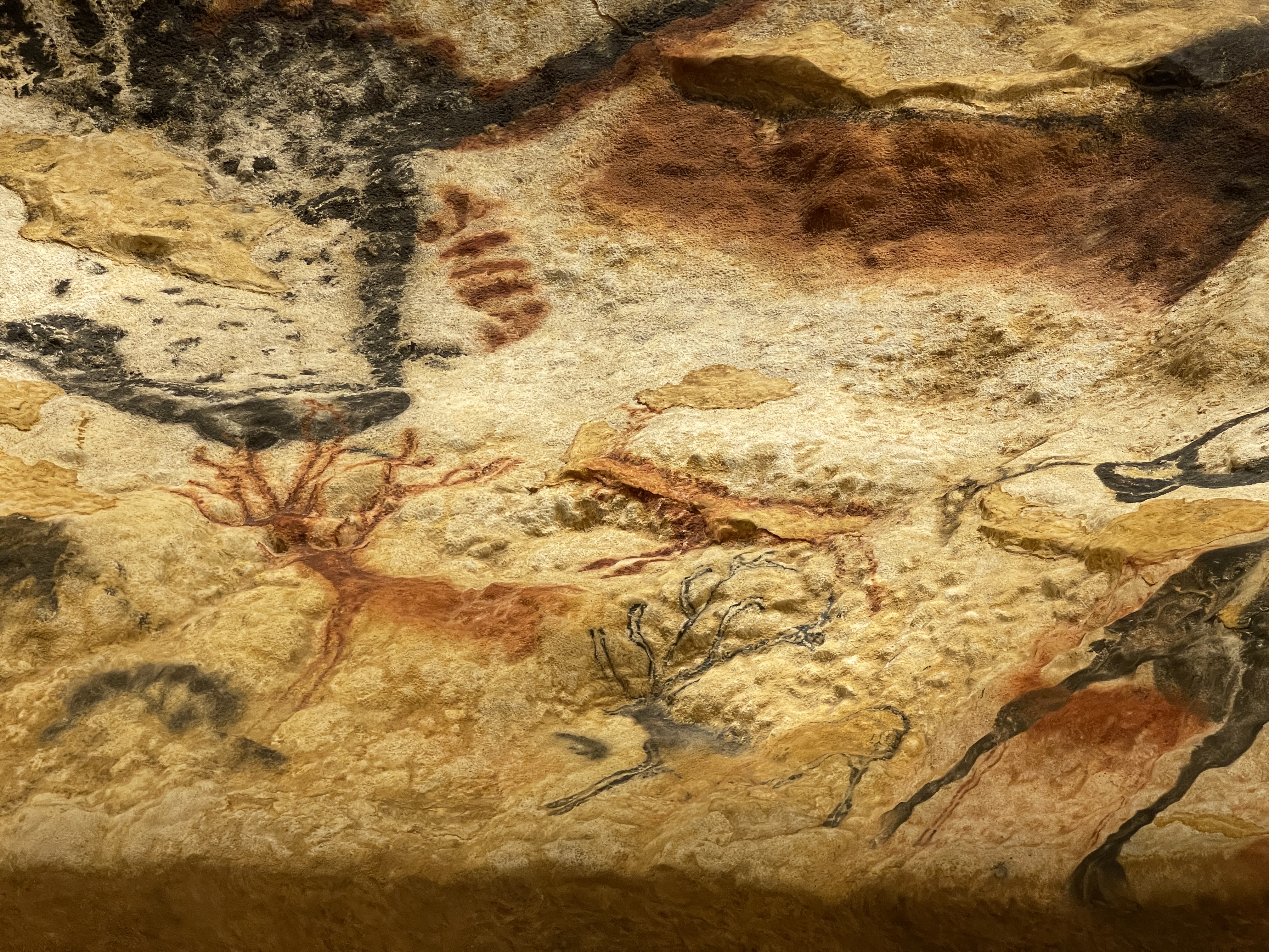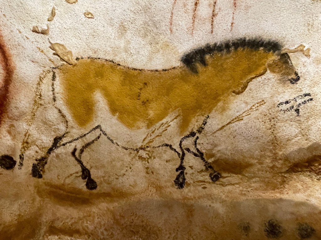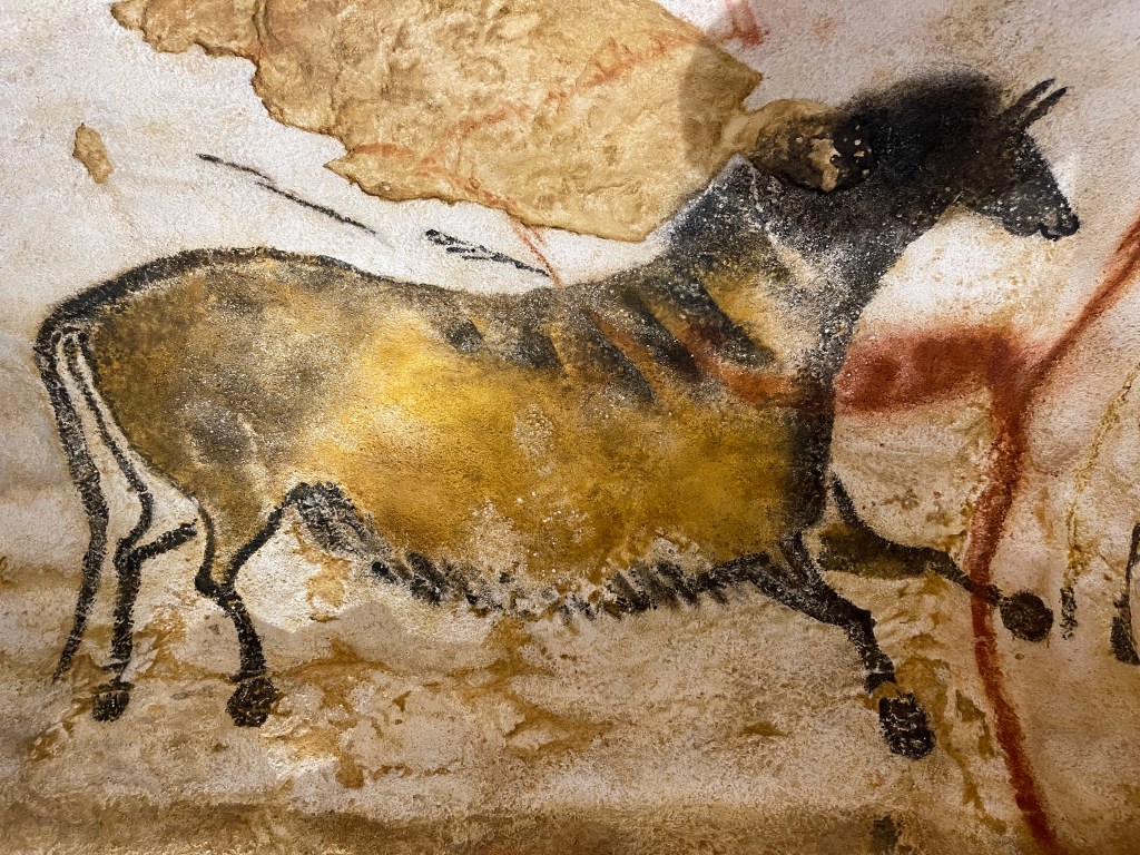 Montignac. Een rit met problemen. Om negen uur gaan rijden om op tijd in Montignac te zijn. Op tijd is niet gelukt.File en TomTom geeft een alternatieve route die ik dan maar volg. Fout! Rijden we op een “0ne way road” kom ik opeens voor een bord “Route Barré”. Net te ver om op tijd rechts af te gaan. Gelukkig een kleine parkeerplaats waar we alle drie konden draaien. Maar toen zag Jolanda niet dat het een eenrichtingsweg was en dat ze nu meteen links had moeten gaan. Ik zag het ook te laat. Opstopping, achteruit en via een smal straatje (spiegels in) kwamen we op de goede weg. Eindelijk bij de camping bleek die gesloten. Op naar de camperplaats en vandaar (2,5 km lopen) naar de grotten van Lascaux. Werelberoemd, we hadden moeten reserveren. Na 1,5 uur konden we mee met de Franse tour. En dat hebben we geweten. Bij de gratie Gods kregen we een tablet mee met Nederlandse uitleg maar heel summier. En die Franse gids maar praten! We hebben het erg mooi gevonden. Je mocht niet fotograferen maar bij de uitgang was nog een overzichts ruimte. Zonder meer een bezoek waard, alhoewel je kijkt naar een replica. De originele grot wordt goed beschermd zodat de mooie kleuren niet aangetast worden.