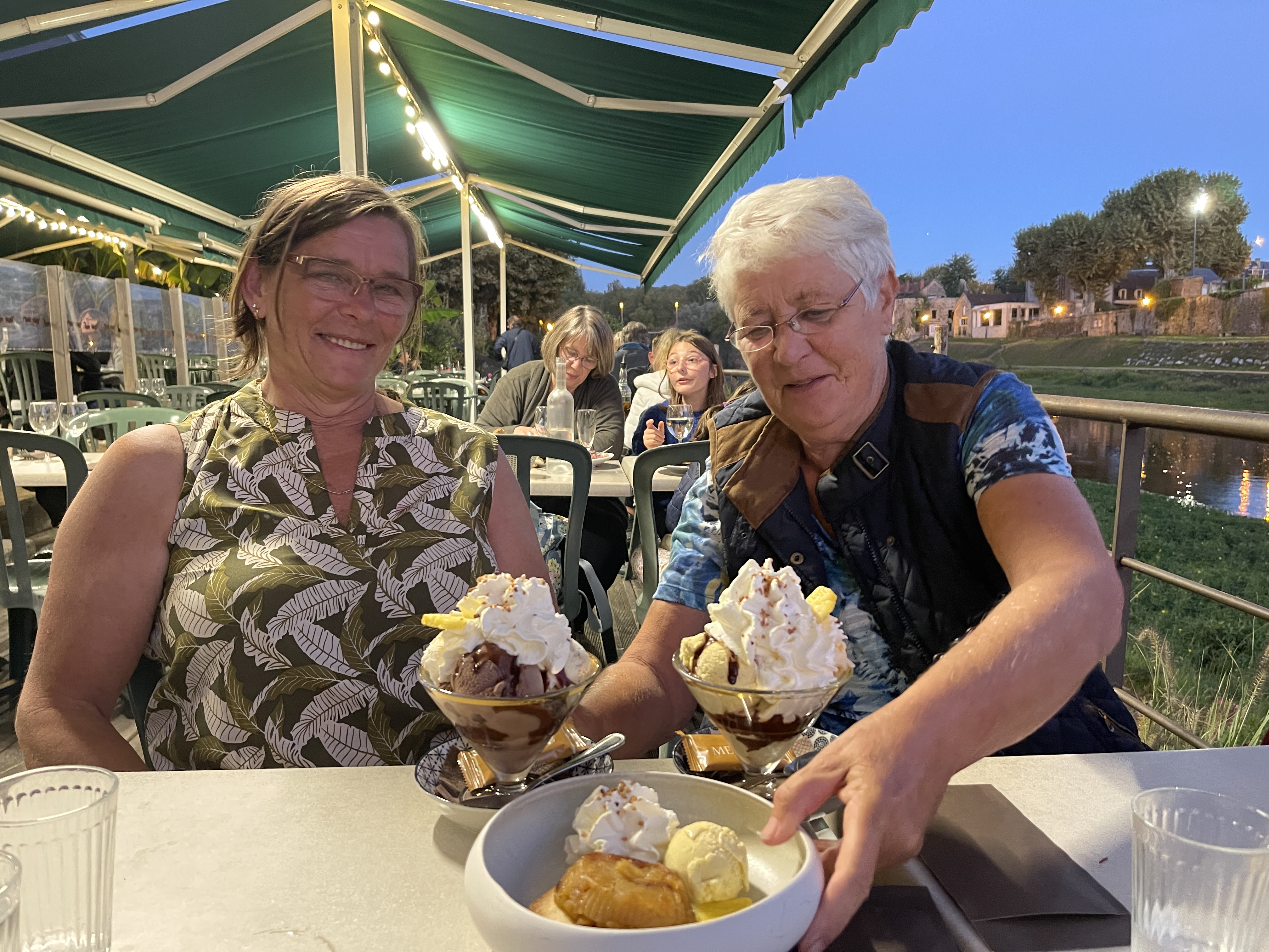 We sluiten de dag af met een etentje aan de rivier. Canard erg lekker en slechts een klein toetje toe.