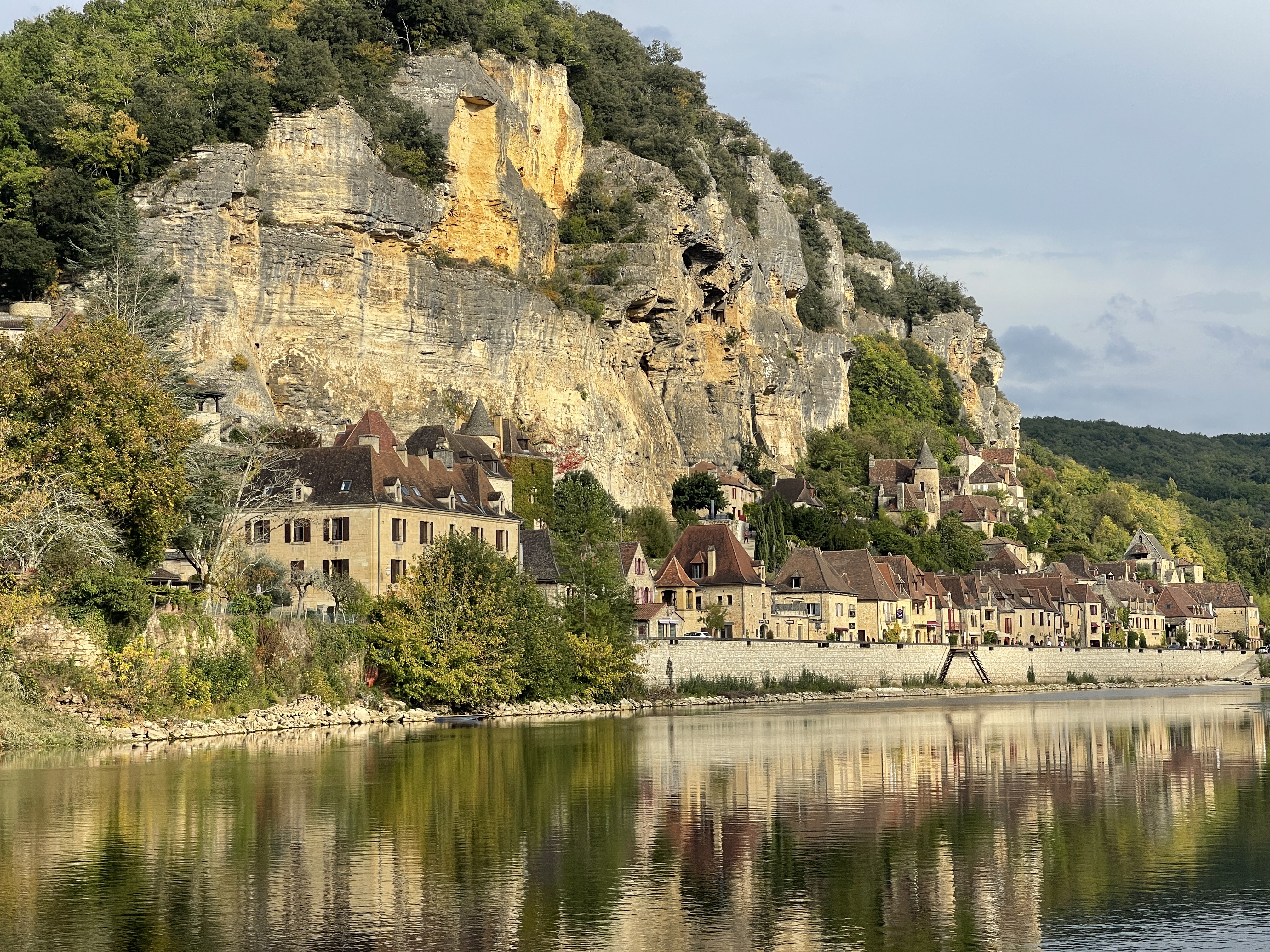 Voor de overnachting naar Les Eyzies, helaas je mocht gaan staan maar ‘s morgens om 7 uur vertrekken. Dus door naar Le Bugue. Mooie CP (12899), je kan staan waar je wilt. Wij waren echter zo moe dat we gewoon zijn gaan staan en dat was prima.We wilden eigenlijk wel een dagje blijven op deze mooie CP maar ook daar moesten we weg vanwege een tentoonstelling. De politie klopte om half negen bij Lia aan de deur. En nu het slechte nieuws. Ik besloot mijn koelvloeistof nog weer na te kijken en ja hoor, weer helemaal leeg. Geen enkele aanleiding om te denken dat er iets niet in orde is. maar ik weet dat je zo niet verder kan rijden. Gevuld en toch nog naar La Roque gereden. Wilde ik graag nog een keer zien en ook Lia vond het een prachtige plek.