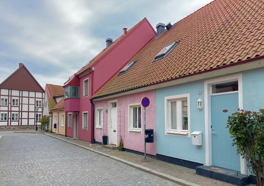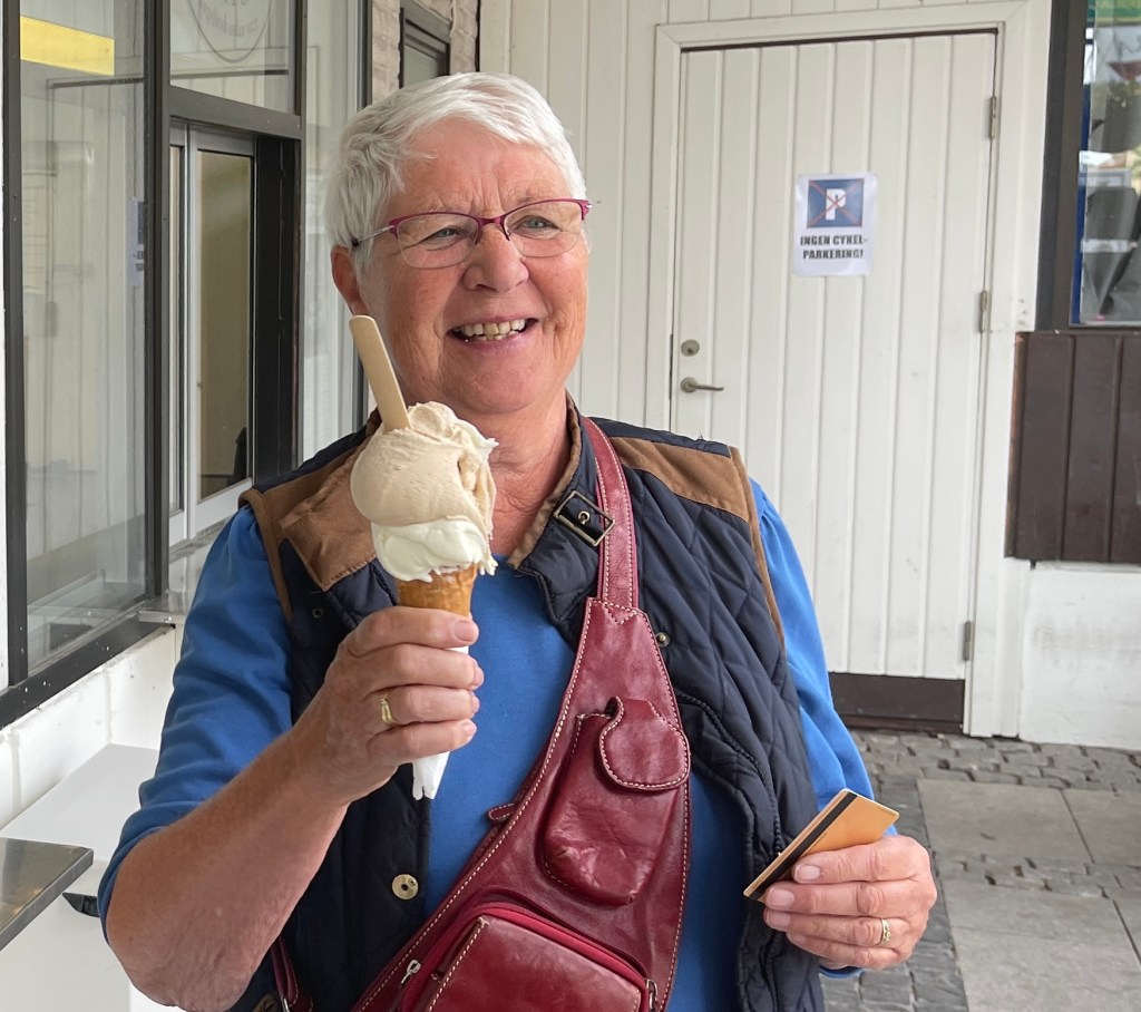 15 mei. Wakker worden in Zweden. Koud en een gure wind. Maar wel even de pier op en een mooi zandstrand. Naar Ystad, een mooie plaats, gereden. Hier kon ik ook mijn Deense en Noorse Kronen van een vorige reis omruilen voor Zweedse. Was nog een leuk bedragje. Wat je echt moet weten als je naar Zweden gaat is dat de Zweden gek zijn op Fika en een zoet broodje. Aan dat gebruik maar meteen meegedaan in een aardig restaurantje. Wat voor mij dan weer tegen valt is de koffie. Ik drink het zwart en je schenkt het zelf in uit zo’n grote ketel en mag een gratis refill. Die koffie vind ik niet zo lekker. En dat was overal zo. Cappuccino en Latte wordt wel achter de counter klaar gemaakt. Lia kon op de parkeerplaats niet betalen met haar bankpas. Later bleek dat je op alle parkeerplaatsen en camperplaatsen moest betalen met een creditkaart. Het campergedeelte op de parkeerplaats beviel ons niet en doorgereden naar de parkeerplaats bij Ale’s Stenar (102965) waar we prima konden overnachten.