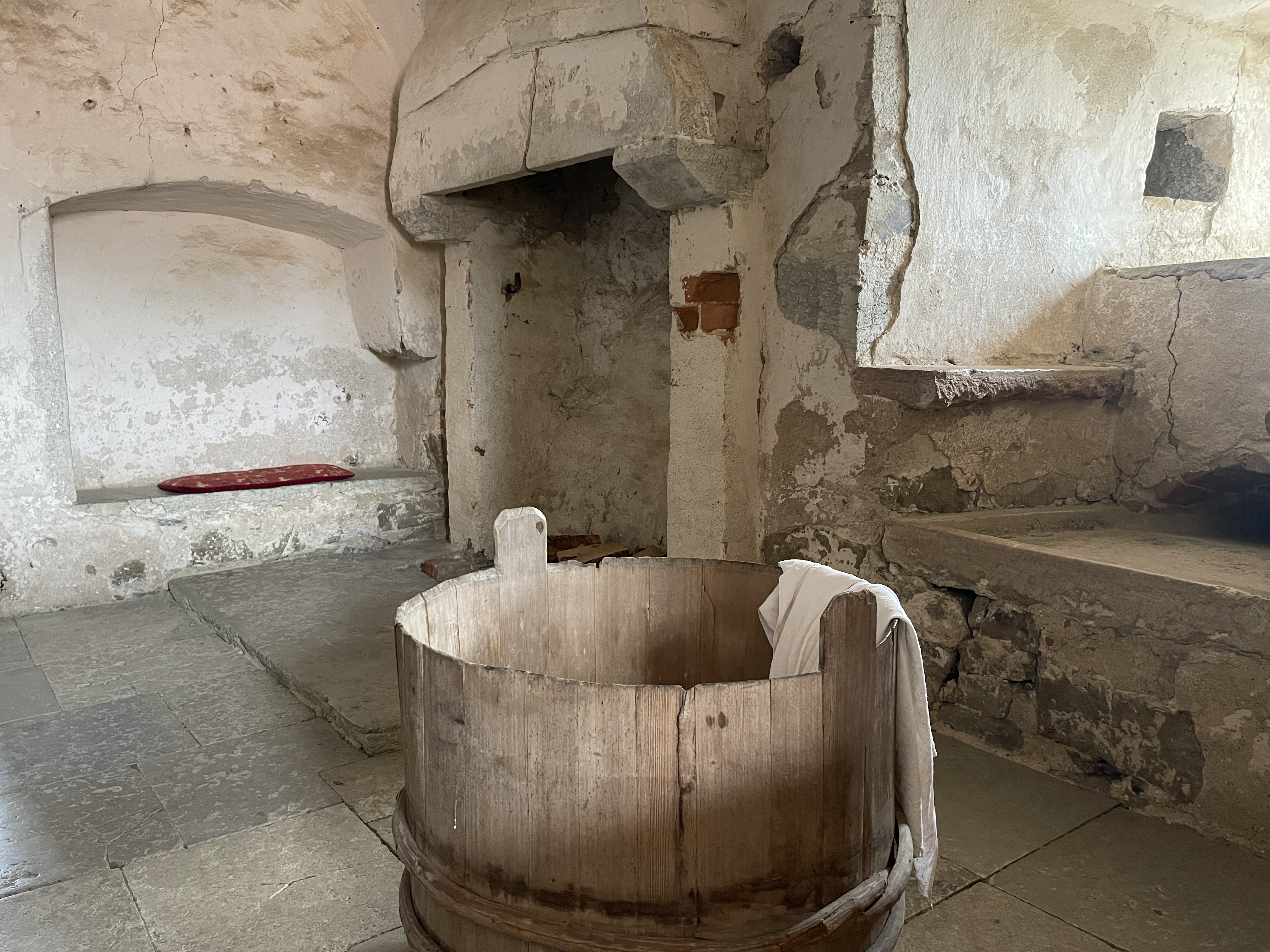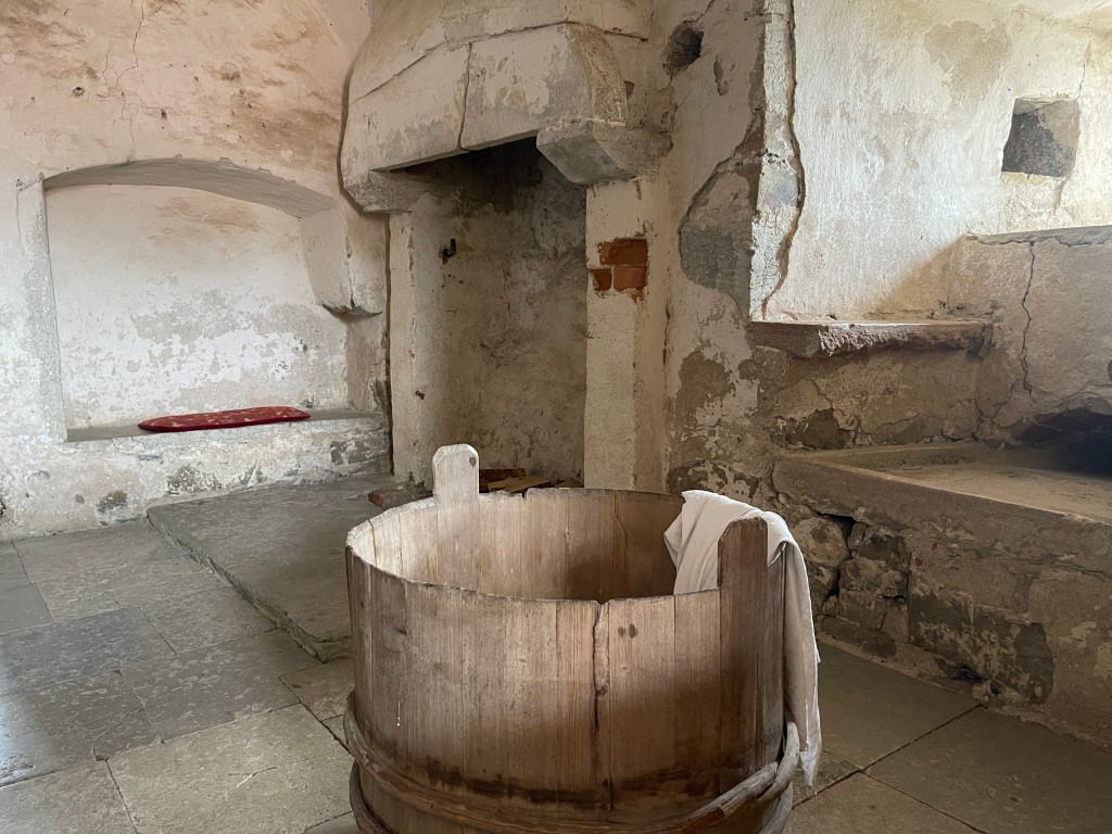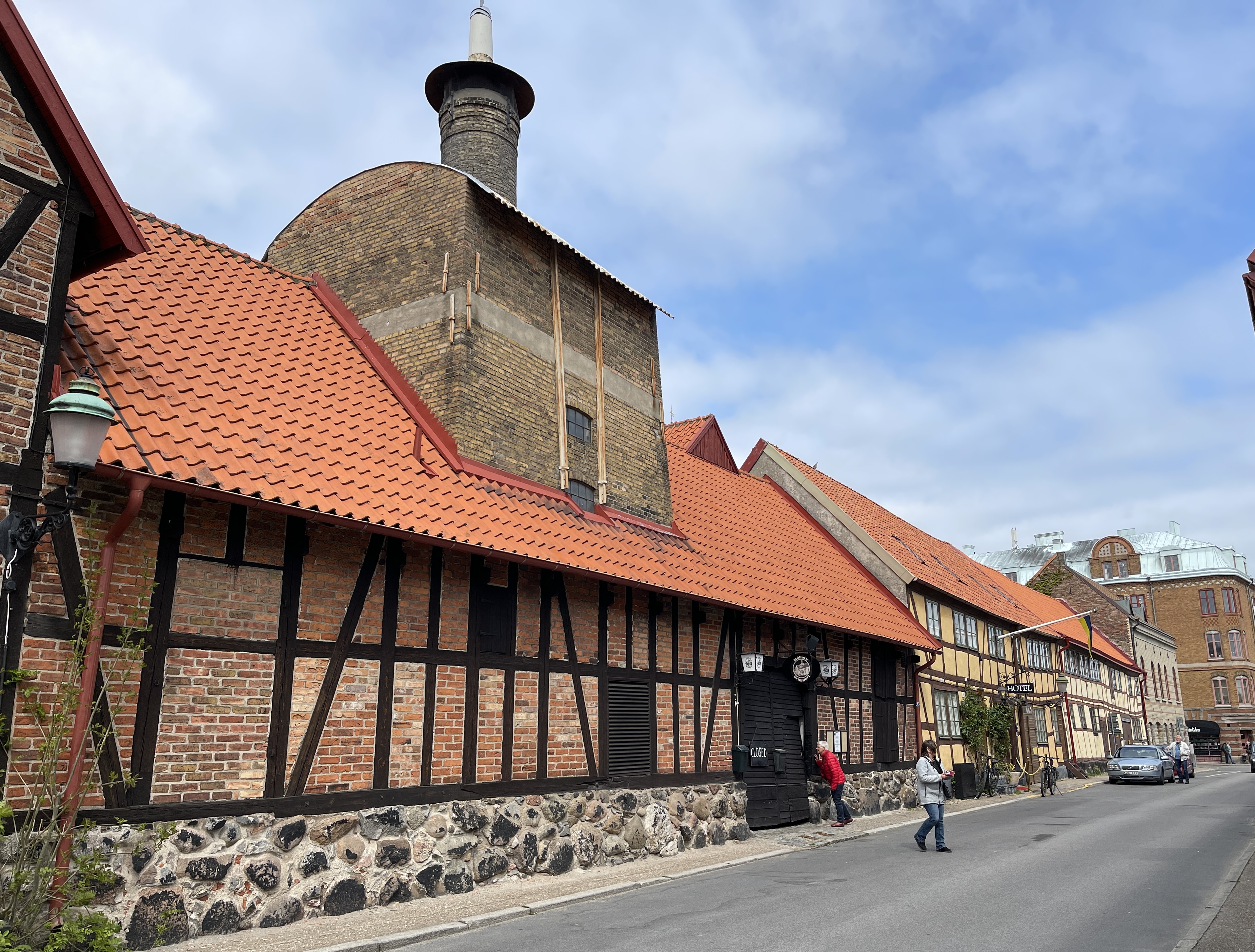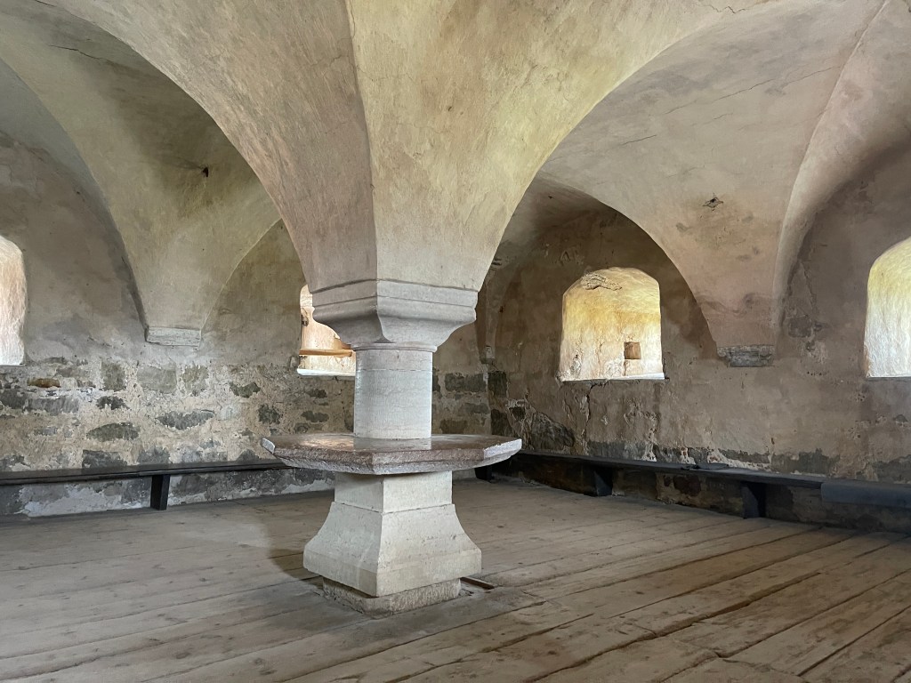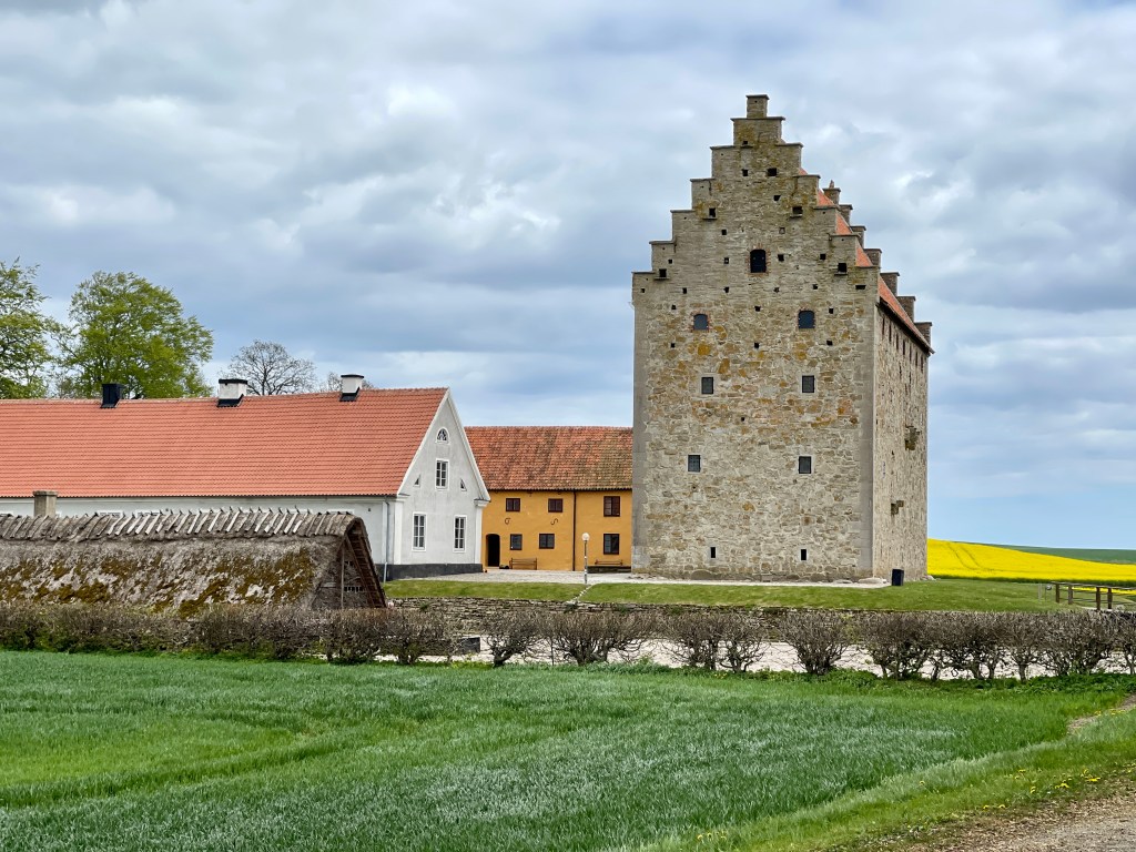 Als je weer naar beneden loopt moet je het pad naar rechts nemen om uit te komen in een kleine vissershaven. Wij kregen de tip van Joke (koffieklets), zij heeft daar lang geleden met de boot gelegen. In dat haventje zit een prachtige viszaak die gerookte vis verkoopt. De anderen namen botervis en ik gerookte garnalen. Lekker maar ik geef de voorkeur aan gewone garnalen. Vervolgens naar Glimmingehus, het oudst bewaarde middeleeuwse kasteel van Zweden gereden. We boffen met het weer maar hebben wel jassen nodig tegen de koude wind. Een streng kasteel. Lastige trappen.