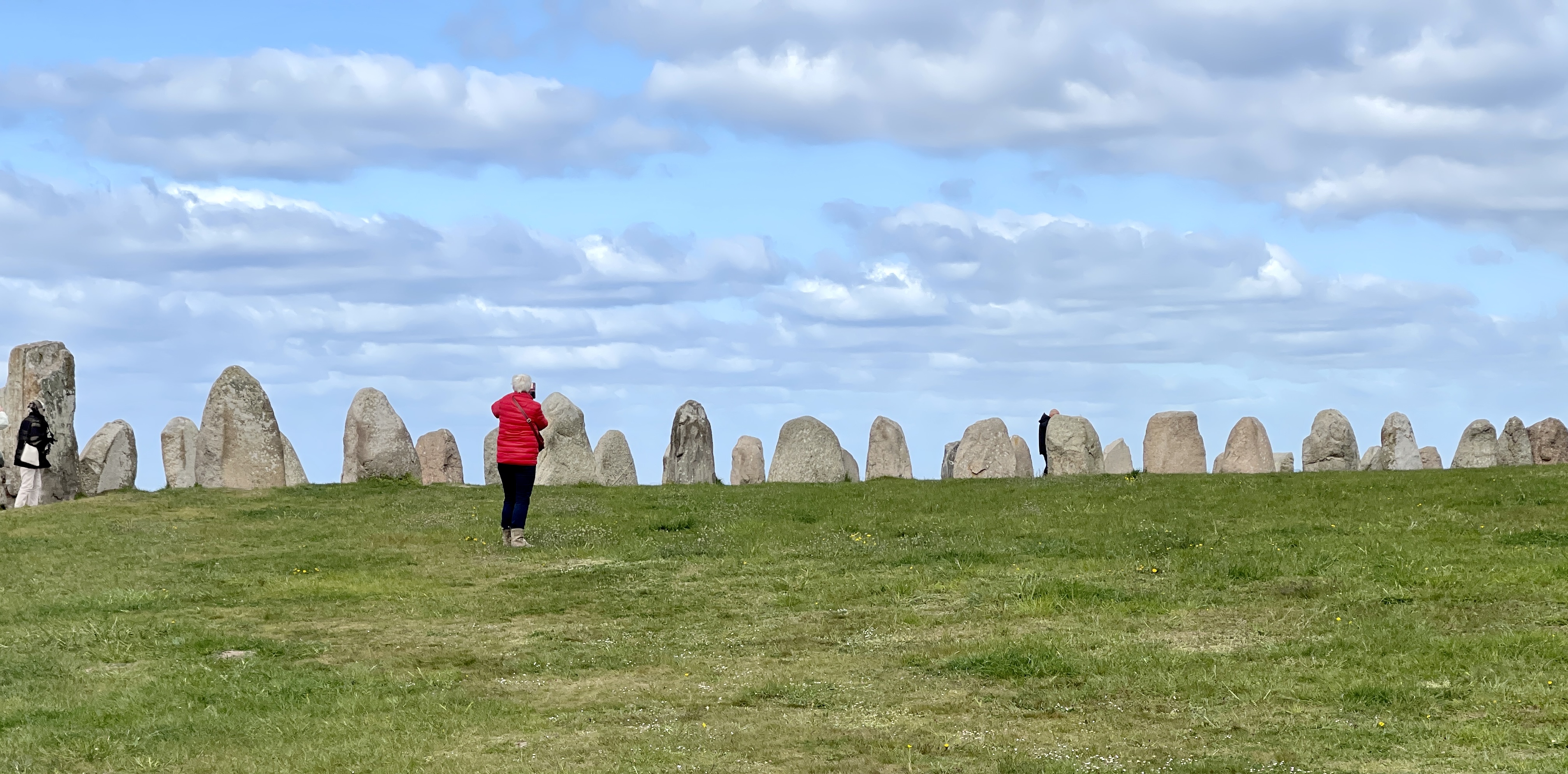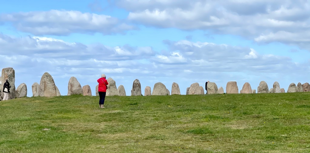 16 mei. We waren al op plek dus konden lekker vroeg naar boven lopen waar op een heuvel Ales Stenar ligt. Een steenschip wellicht een graf van omstreeks 1400. Prachtig in het mooie ochtendlicht. Dat licht en de echt blauwe luchten in Zweden heb ik enorm van genoten. De eerste dagen bleef ik het zeggen.