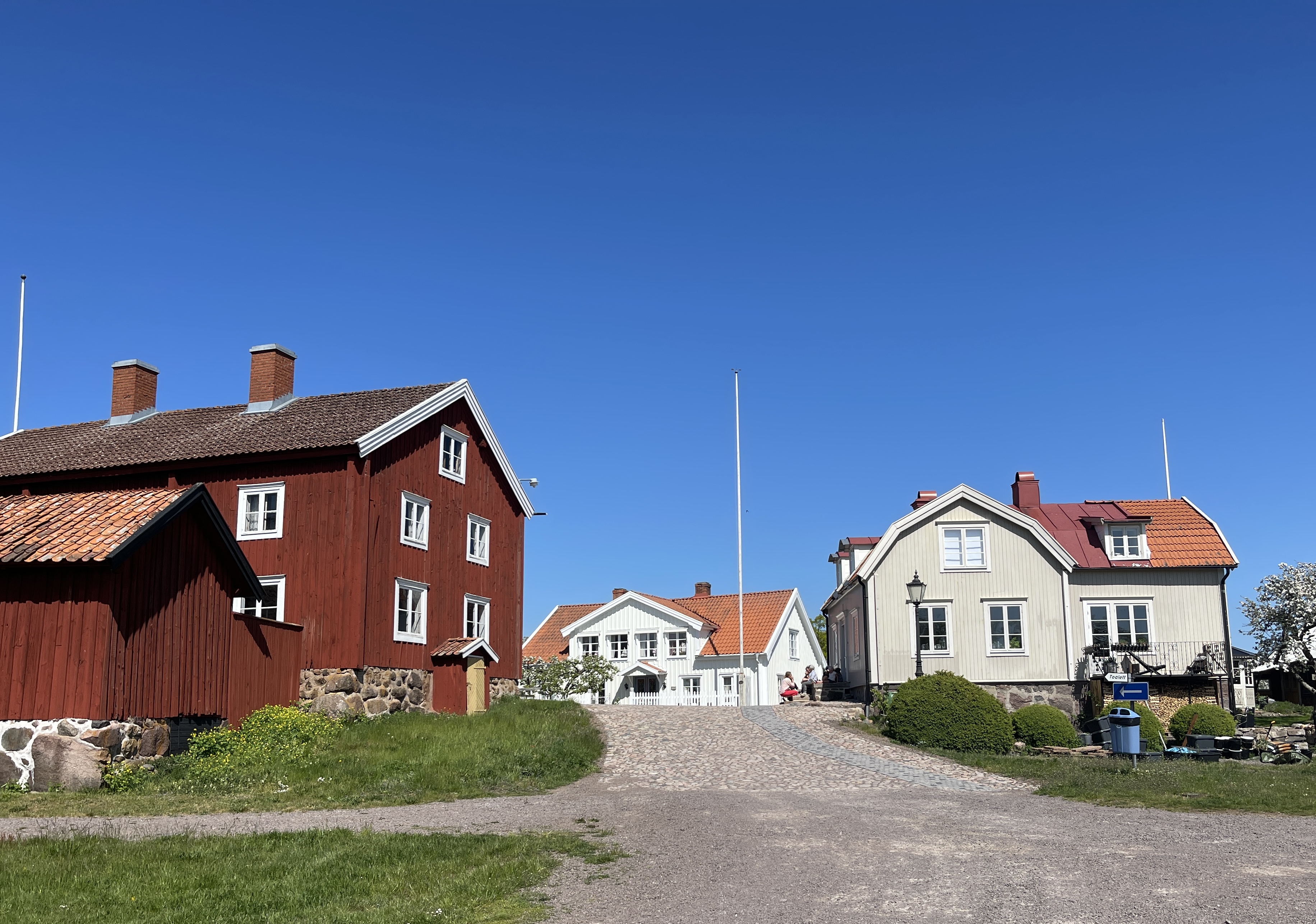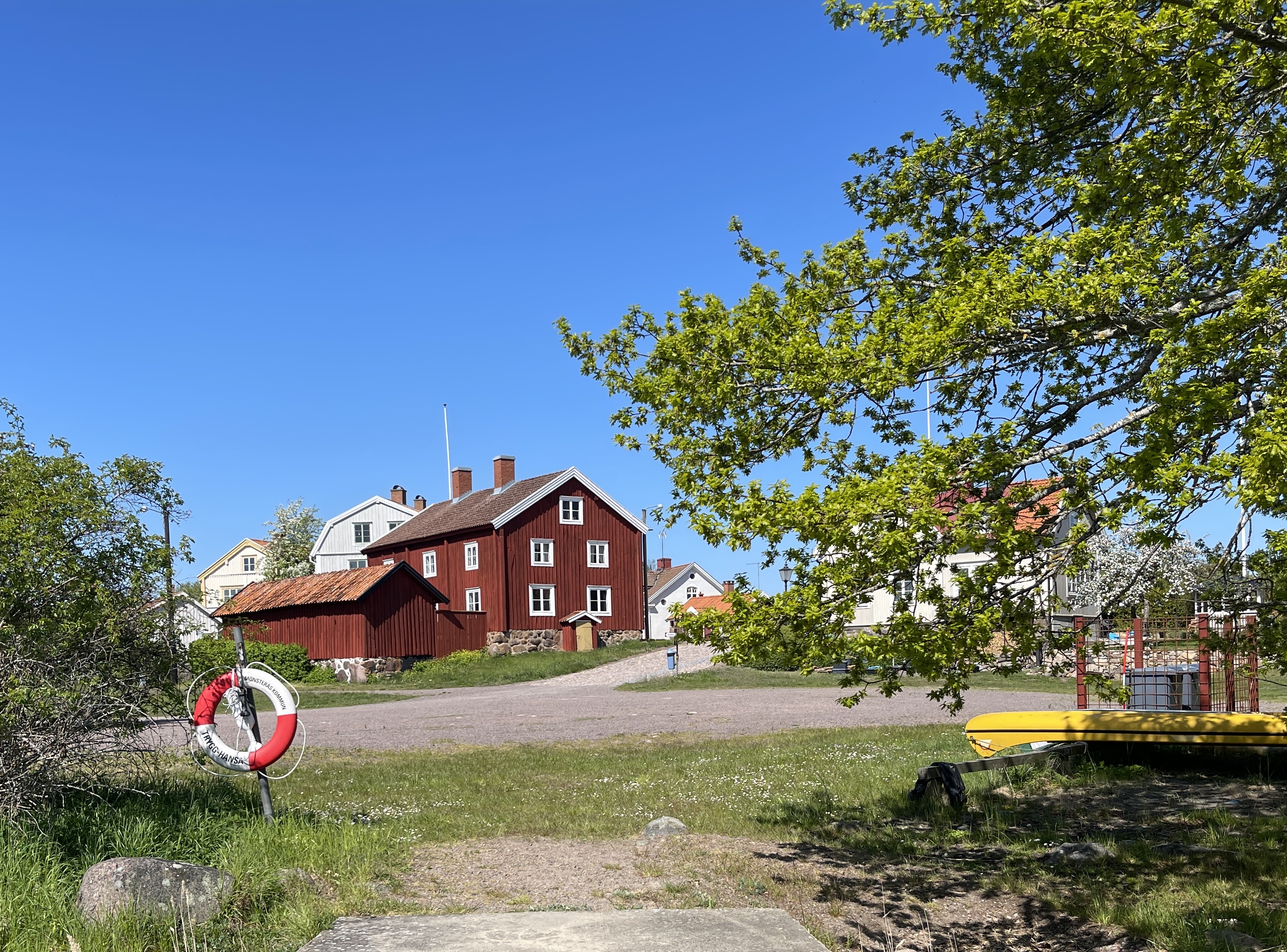 22 mei.We gaan nu richting Stockholm na eerst die peperdure diesel hier getankt te hebben. 2,11 Onderweg twee erg mooi plaatsjes bezocht: Patahomn en Påskallavik. Deze laatste heeft twee mooie camperplaatsen 92125. Overnachten doen we in Norrköping Hedvigs. Een parkeerplaats bij de haven. Sitecode 72045. We doen het er maar mee vandaag. We hebben genoten van die twee plaatsen. In Pataholm liep net een schoolklasje buiten en die hadden met geschiedenis geleerd dat de Nederlanders daar overheerst hebben. Een meisje durfde daar aan ons vragen over te stellen. Maar ik wist dat helemaal niet. Het witte gebouw rechts op de foto is de school.