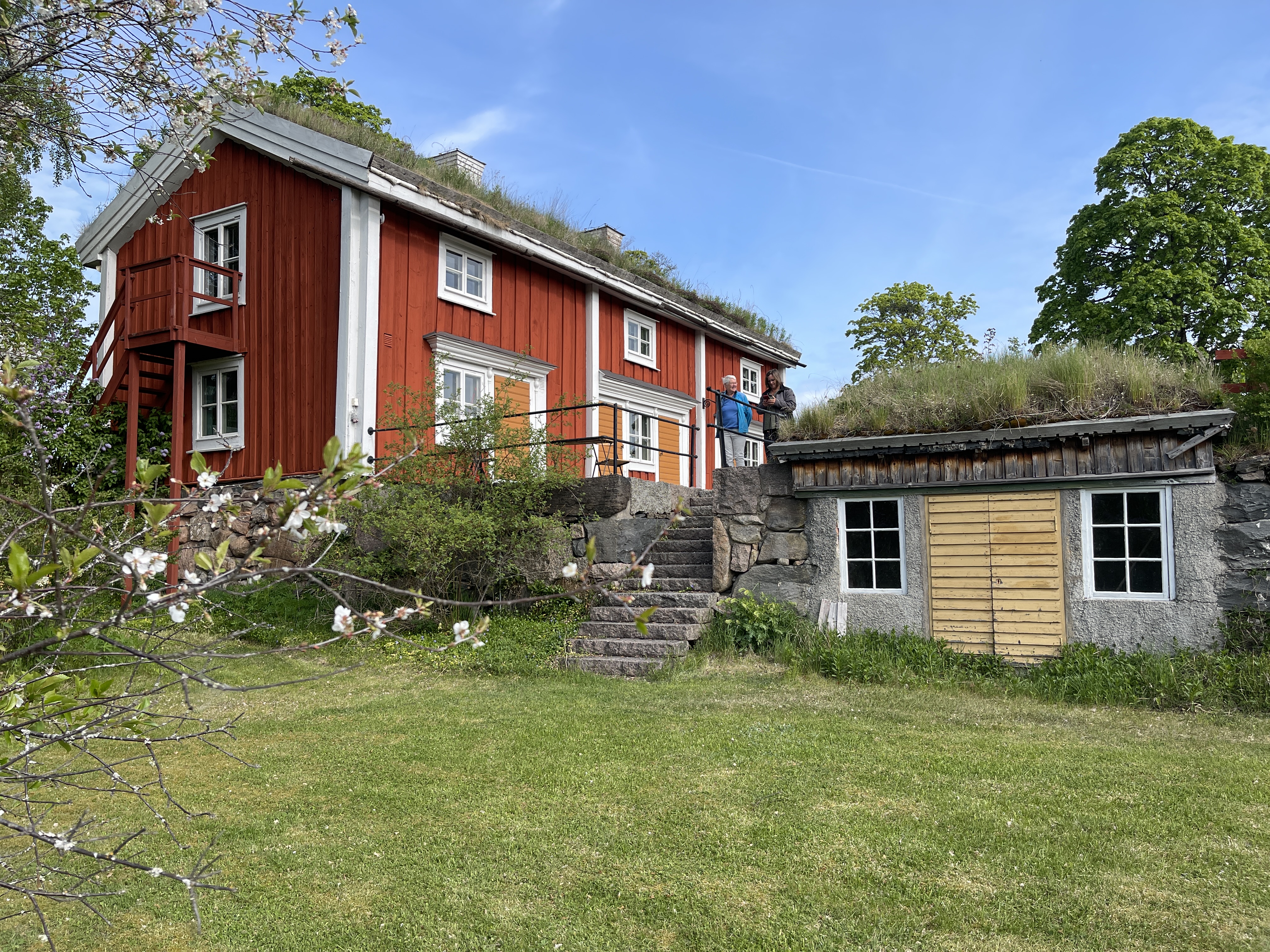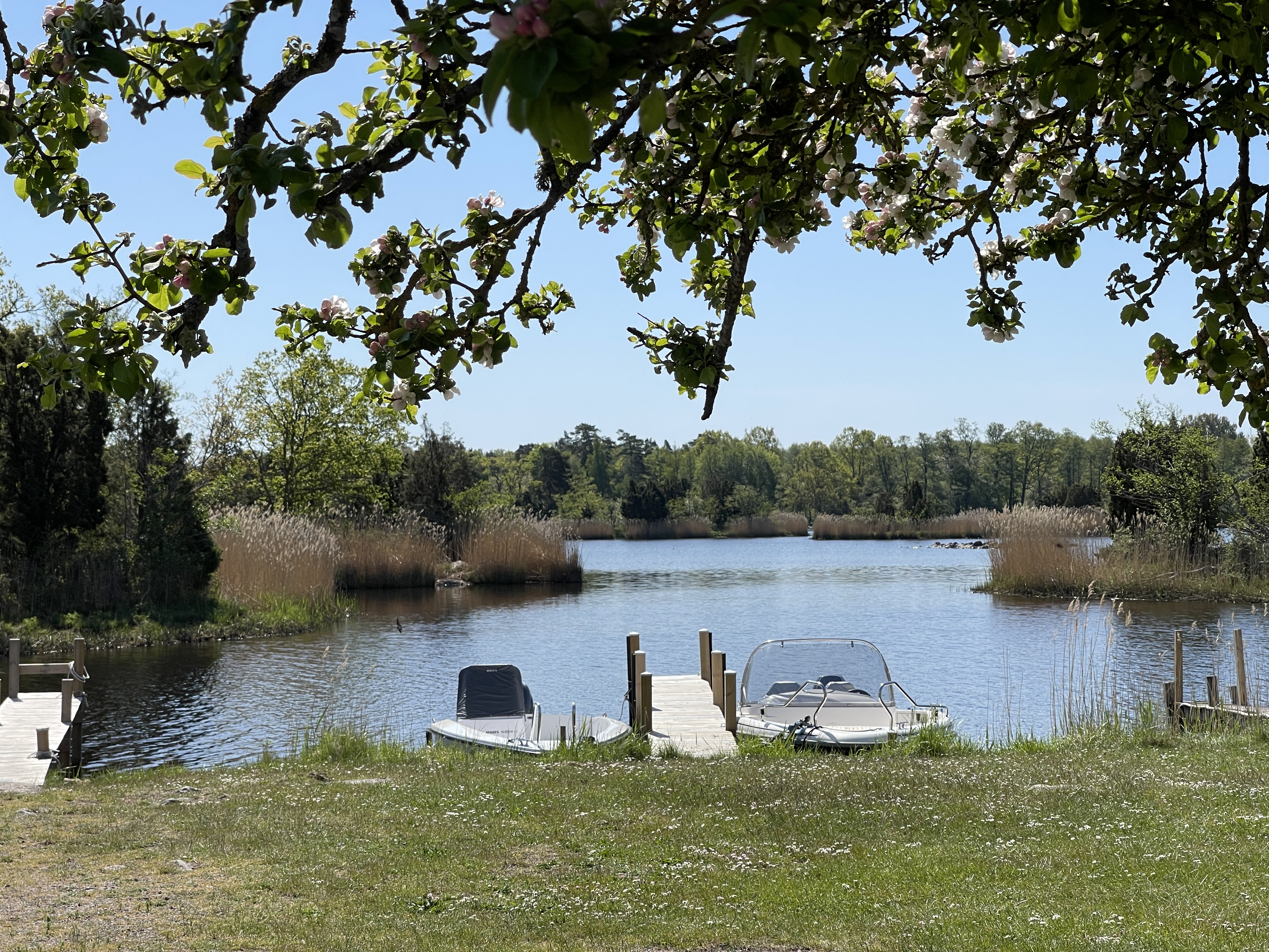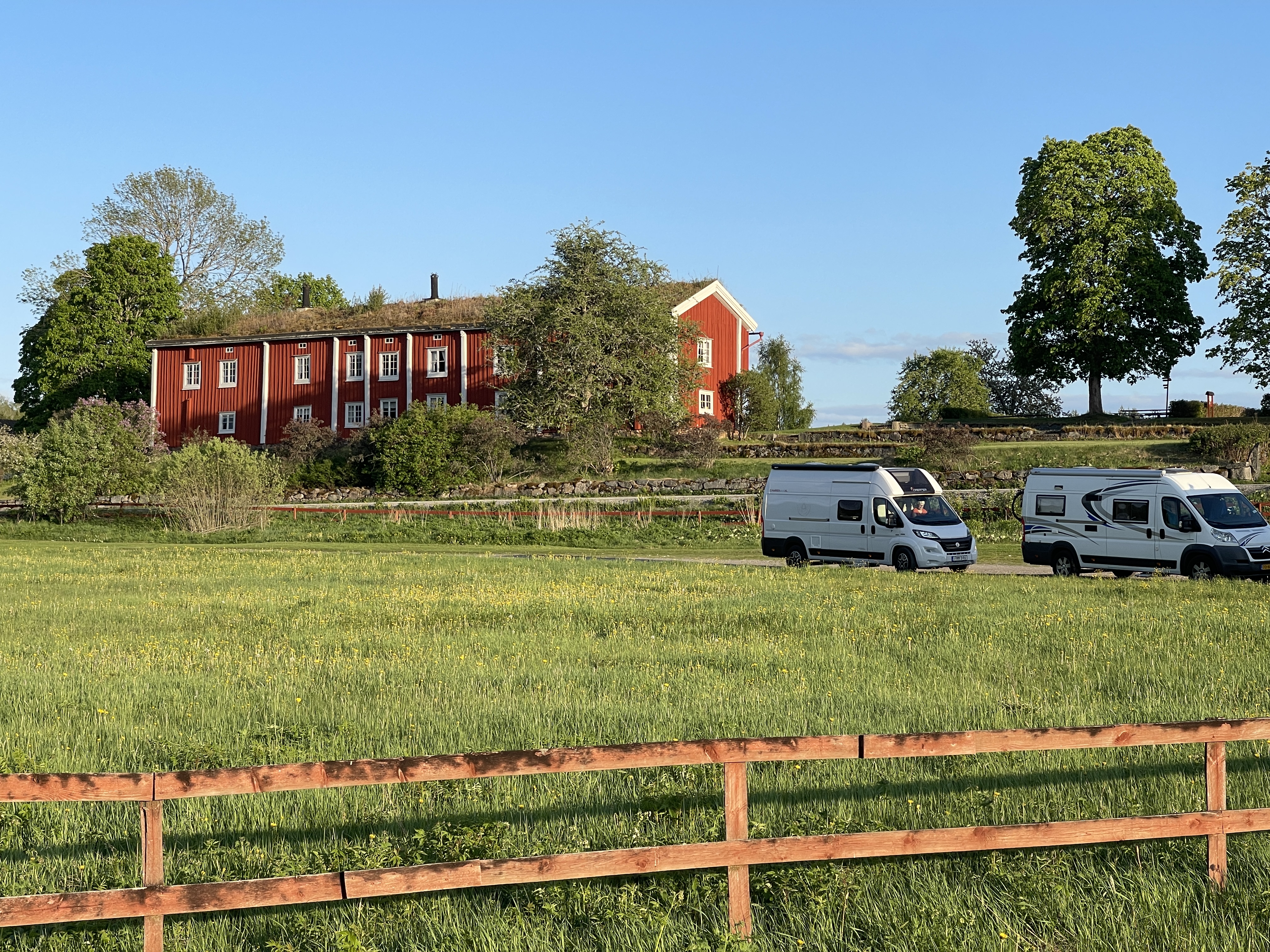 25 mei. Strängäs. Vanmorgen na poetsen en uitslapen om 12 uur de camping verlaten. We zijn alle drie geen stadsmensen . Dus laten we het op een dag bezoek. Spontaan volgen we soms de bruine borden die verwijzen naar iets bijzonders. Vandaag was het: Taxine Näsby. Een slot met heel veel grond er om heen. Aan het water en wederom prachtig gelegen. Op dit filmpje zie je hoe mooi het ligt. We willen overnachten in Strängäs maar de beide plekken in de haven zijn vol. Doorgereden naar: 59.3774523, 17.0321193). Voor de universiteit en uitzicht op het meer. Prima plek. Niet betaald want we konden niet vinden waar dat moest. Waar we nu staan is aan de buitenrand van het dorp. Ställplats Eldsundsviken.