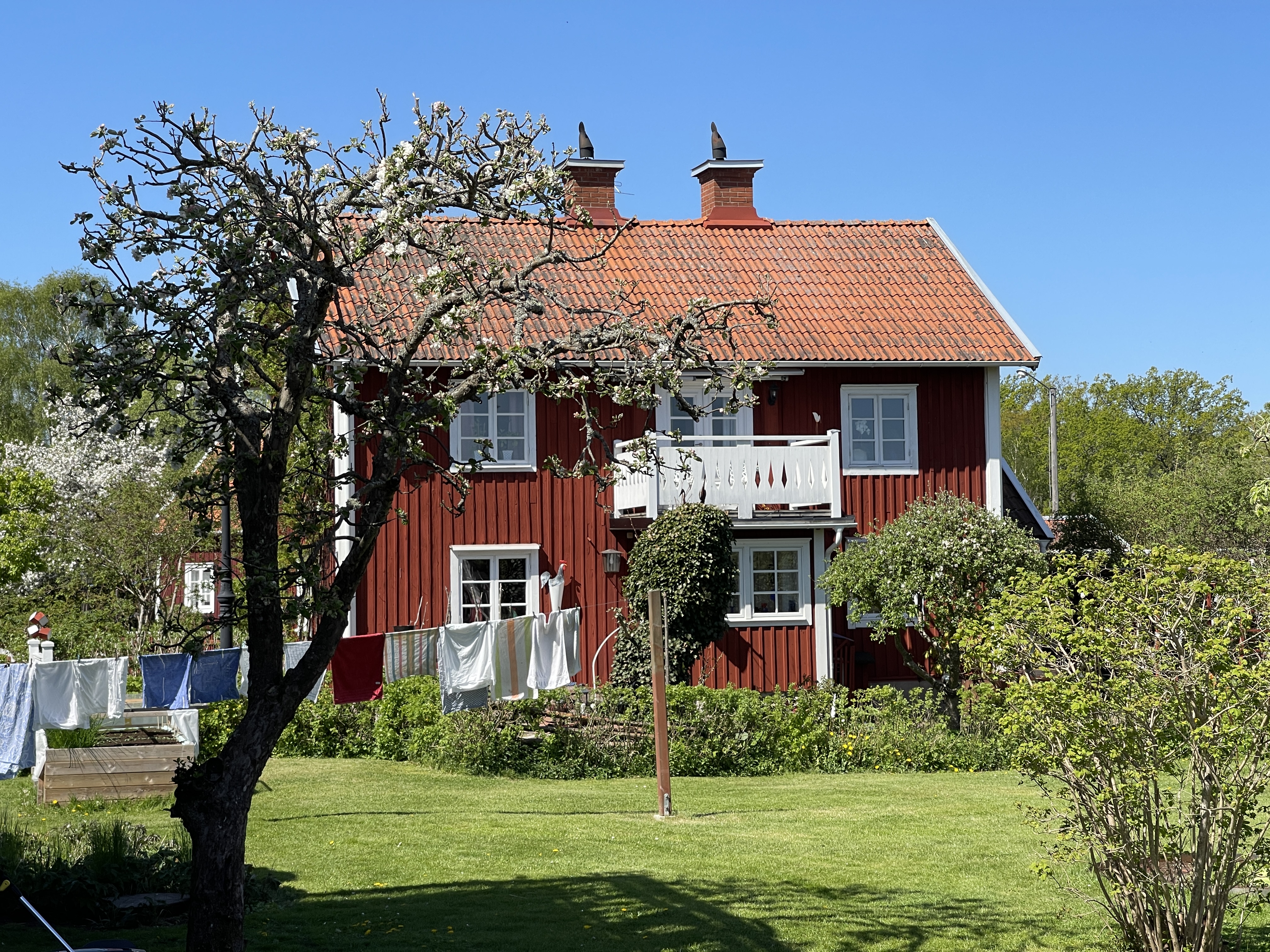 13 juni; Thuis. Pioenrozen op tafel, mijn favoriet. En de tuinstoelen buiten klaar gemaakt. Heel erg bedankt Dora en Joke. De reis vandaag om Hamburg en Bremen verliep heel voorspoedig. Bij Bremen slecht 3 minuten file. De camper ziet er niet uit. In Zweden was het ook heel droog en die stoffige gravel overal doet er geen goed aan. Ook binnen stof en stof. Zweden is mooi. De luchten prachtig blauw en het voorjaarslicht, ik heb er van genoten. Wij hebben vier weken mooi weer gehad en ook dat overtrof al onze verwachtingen. Ook de weidsheid vond ik heerlijk. Rijden was echt een plezier. Helaas waren de dieselprijzen erg hoog. En de boten heen en weer ook een aardig bedrag. Totaal 600 euro diesel, 500 euro overnachtingen 400 euro bootkosten, zijnde 1500 euro. Bedankt voor jullie reacties op polarsteps en allemaal veel camperplezier.