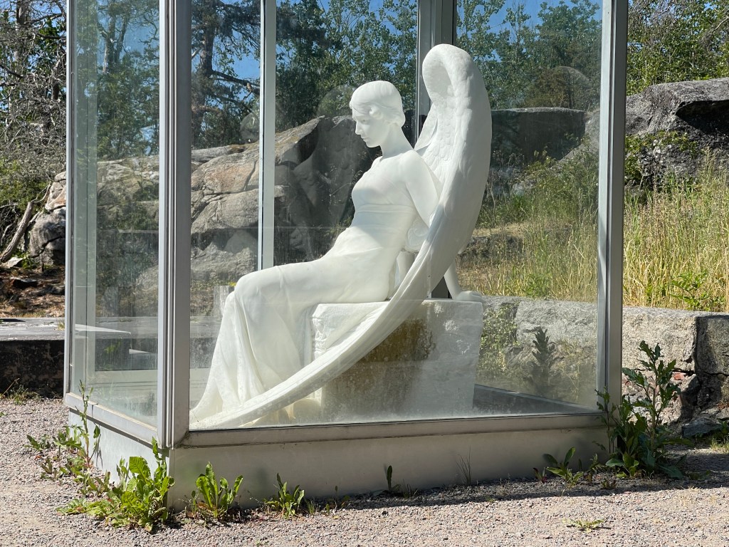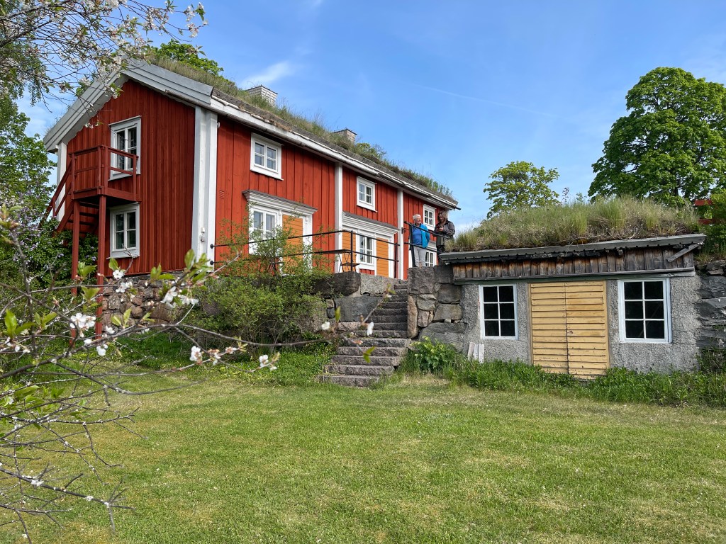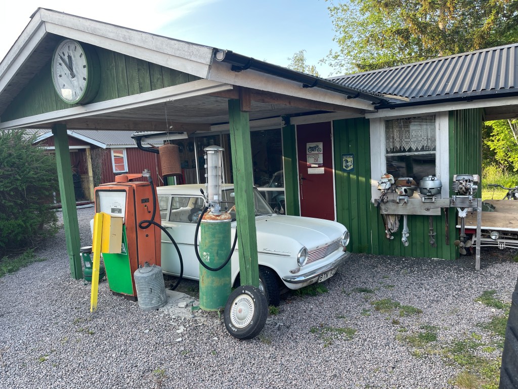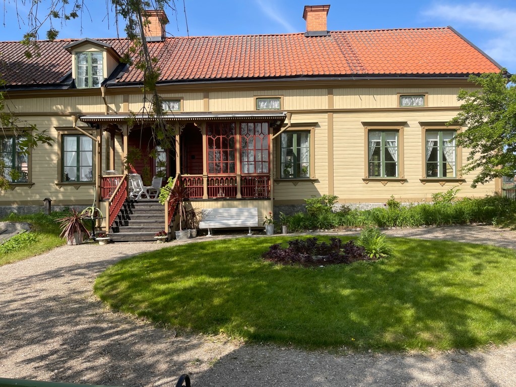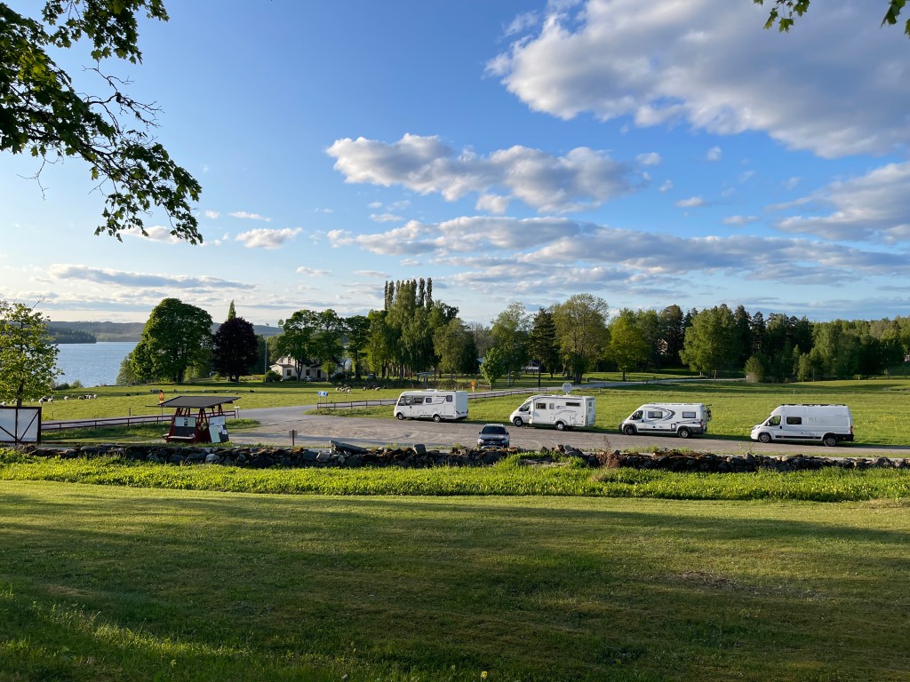 26 mei. Niet zo’n leuke dag vandaag. Goed geslapen, we stonden op een mooi rustig plekje maar toch ging er van alles fout. Het liep niet. Dan valt mijn iPhone uit de houder bij het openen van mijn deur. eerder is mijn Iwatch ongemerkt beschadigd en die moet echt vervangen. Later gaan we even naar een supermarkt waar je maar twee uur mag parkeren, blauwe schijf ingesteld maar vervolgens op een onduidelijke plaats neer gelegd. Gewoon nog gestresst en niet goed opletten: Vijf honderd Kronen boete. Vervolgens naar een andere parkeerplaats voor Eskilstuna. De plaats vond ik niet de moeite waard. Maar we staan vanavond op een geweldige parkeerplaats voor de overnachting. Bij een klein openlucht museum Siggebohyttan. Gebouwd rond 1860 voor een mijnbouw (ijzer) heer en zijn personeel. Zomers druk bezocht maar nu alles dicht.