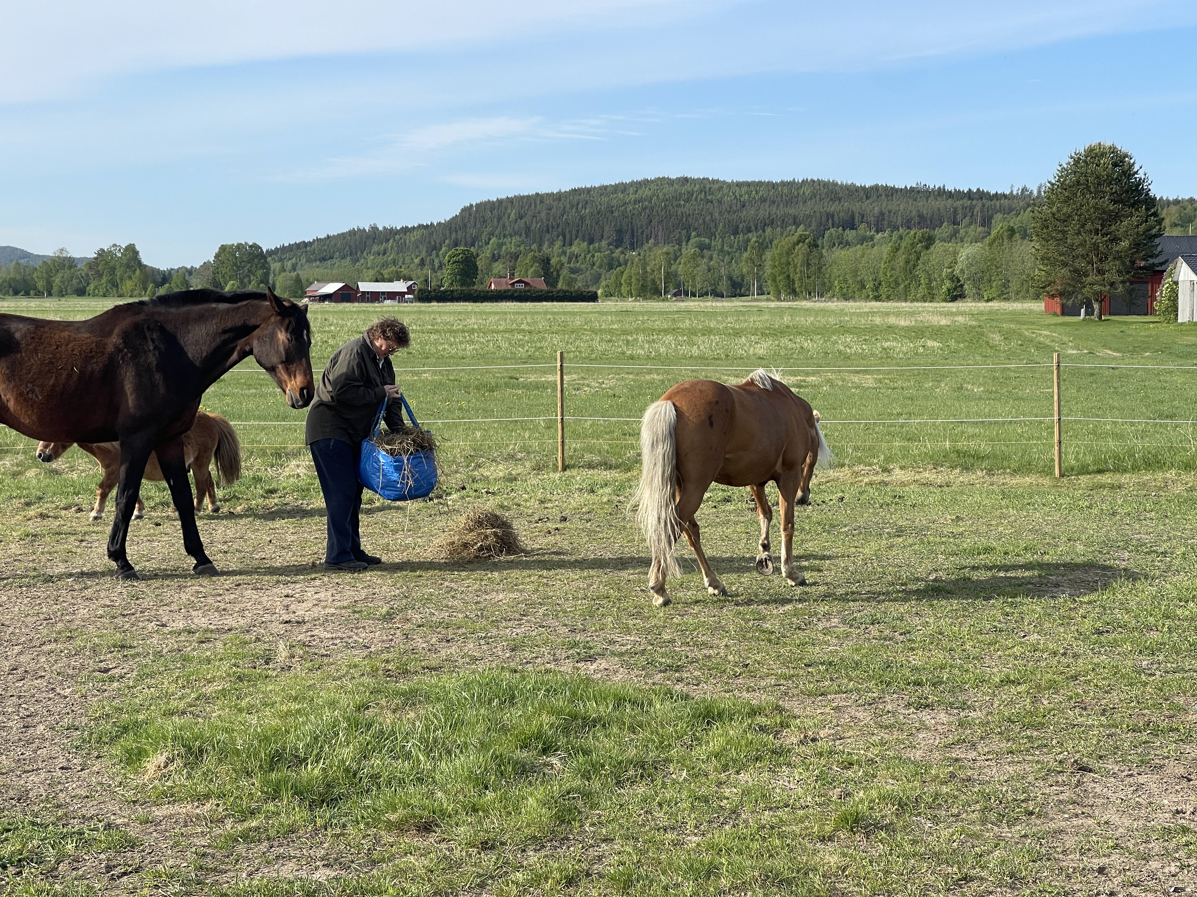 De rit van Nora naar Hagfors of om precies te zijn naar Eksharad waar de familie van Lia woont, bevalt me wel. Ik rijd altijd voorop en op deze rustige weg het rijk alleen, zo leek wel. Dat rijden met dit prachtige weer doe ik met plezier en met mij de motorrijders. We worden erg hartelijk ontvangen door Corine en Olaf, de familie van Lia en we kunnen alle drie de campers op hun terrein zetten.