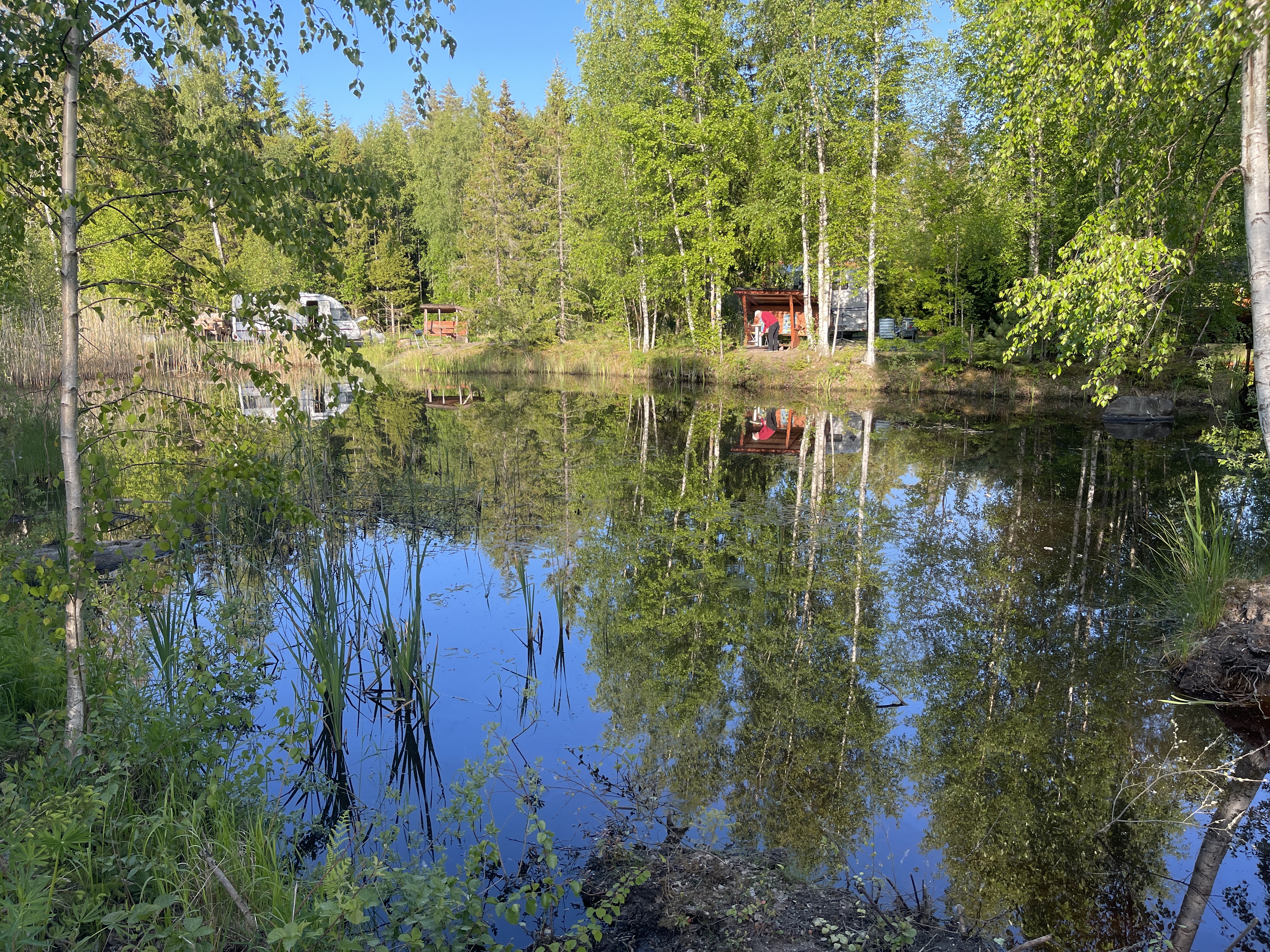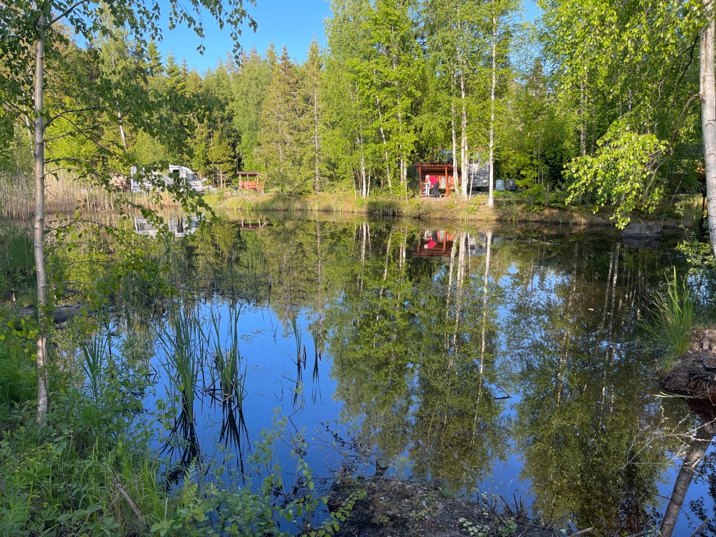 En toen moesten we nog een overnachtingsplekje zoeken en dat viel tegen. Jolanda vond uiteindelijk een prachtig gedoogplekje aan een mooi meer bij het natuurreservaat Gyllebo (27770)