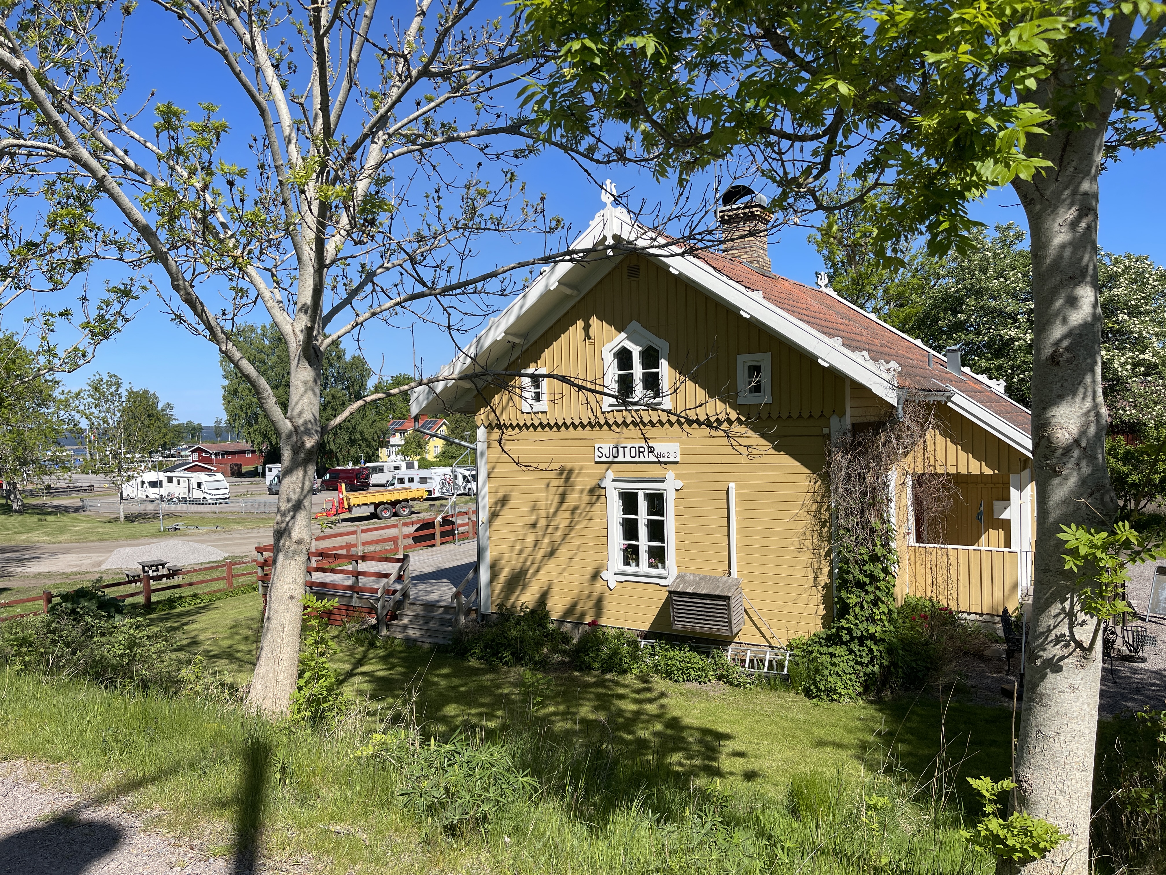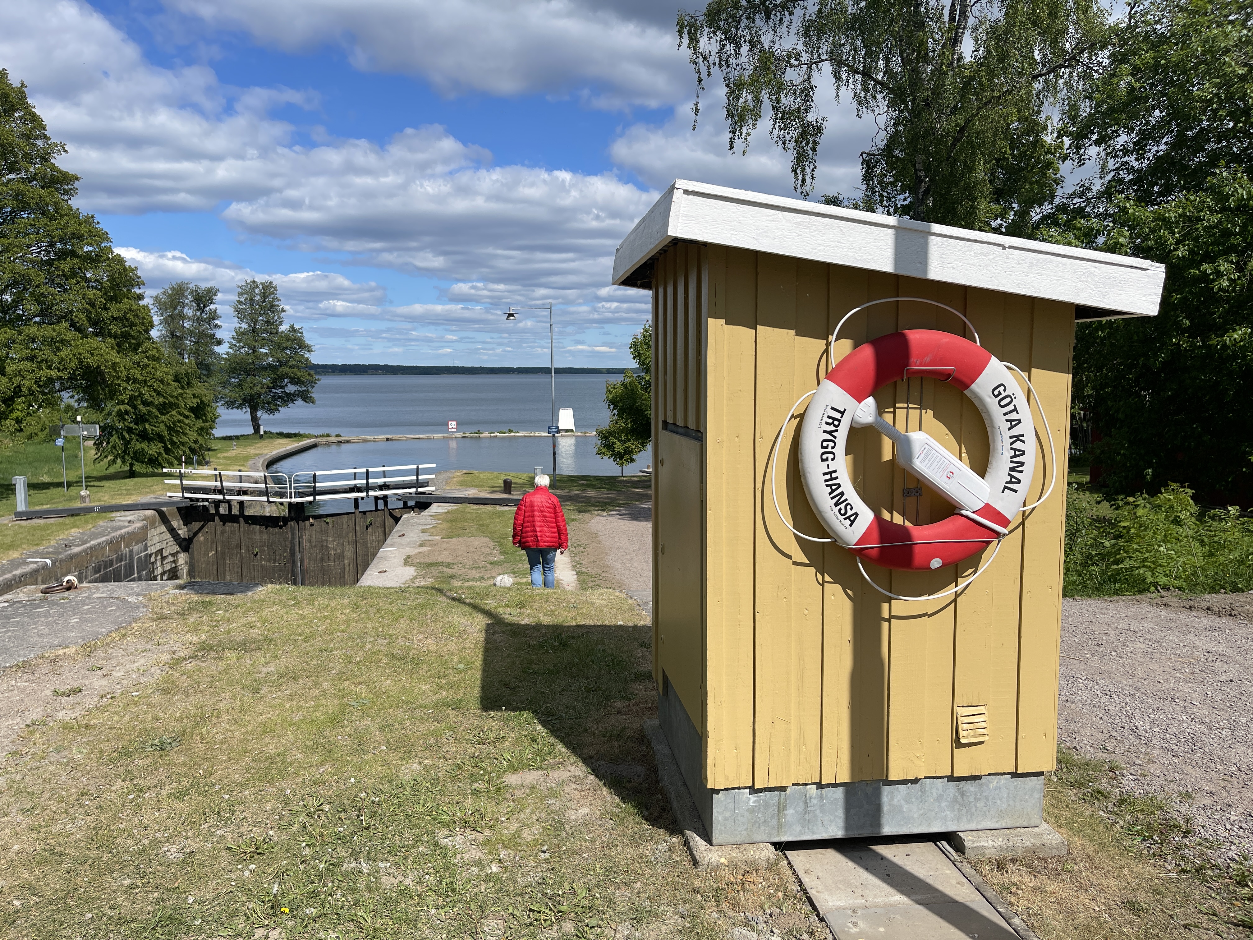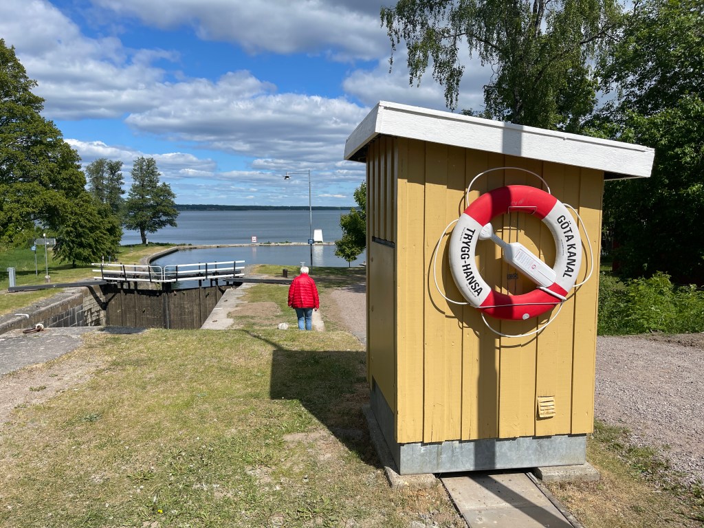 30 mei. Naar het dicht bij gelegen Sjötorp. Hier begint het 190 km lange Götakanaal met zijn 58 sluizen. Daarna naar Hjo, een dorp dat bekend staat om zijn 600 jaar oude huizen. Na een paar gezellige uurtjes daar, nemen we afscheid van Jolanda die weer naar huis moet. Niet na eerst nog met zijn driëen ijs te hebben gegeten. Lia en ik overnachten in Hjo ((P4N)